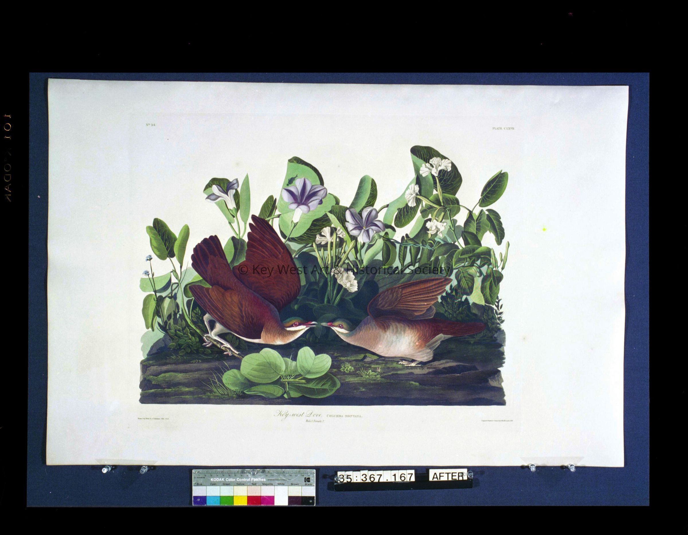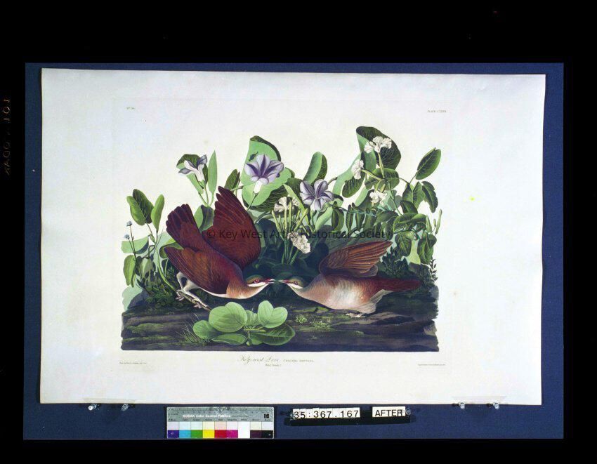 Color negative of John James Audubon's 'Key-west Dove', plate 167, in 'Birds of America'. He encountered the Key-west Dove during a visit to the Florida Keys and Cuba in 1832.