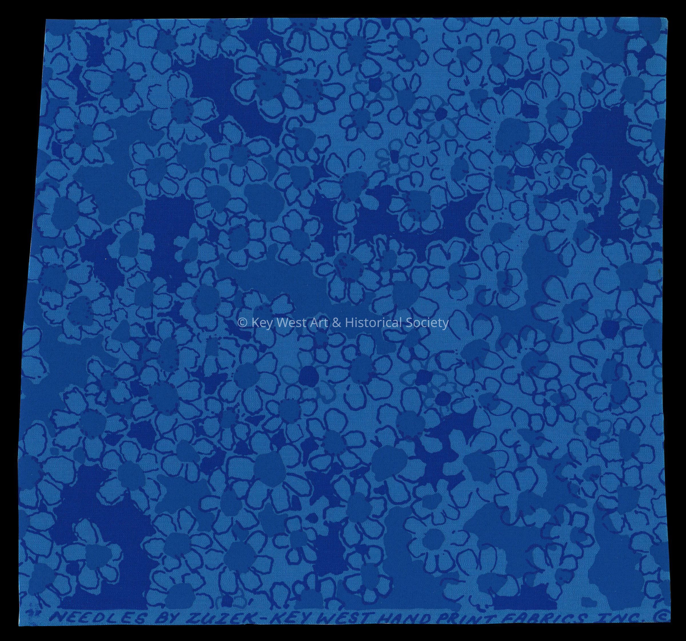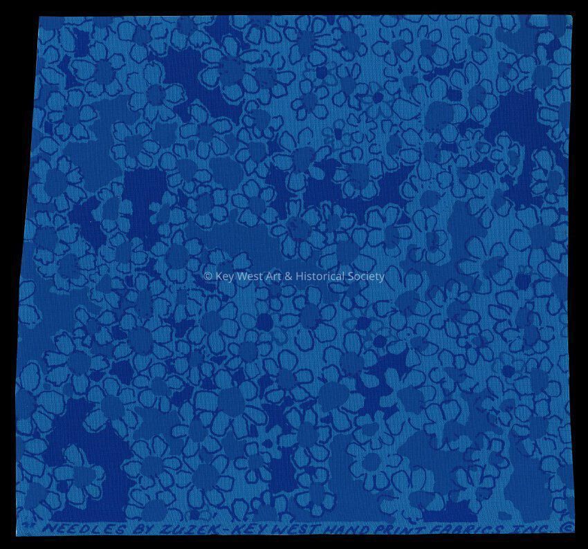 Swatch of fabric designed and printed by Key West Hand Print Fabrics entitled 'Needles'. Suzie Zuzek dePoo was the artist.