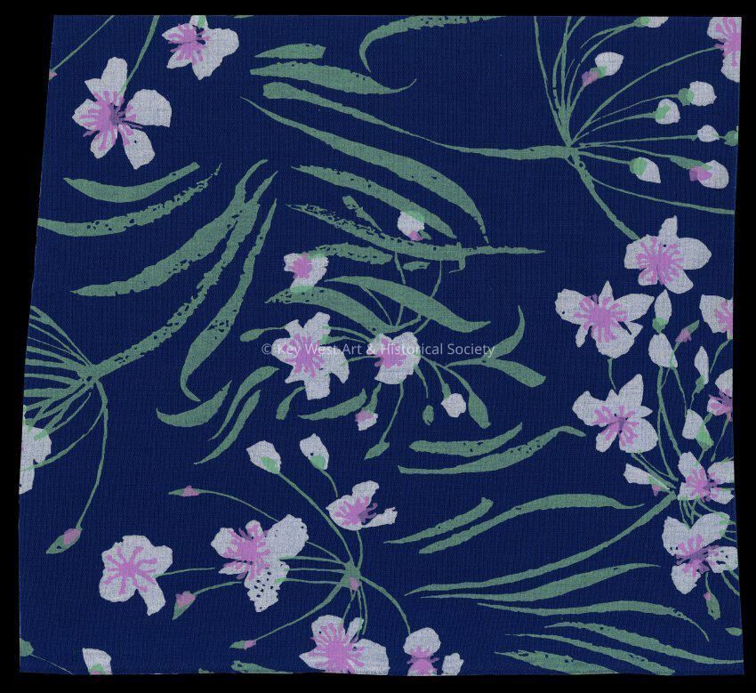 Swatch of fabric designed and printed by Key West Hand Print Fabrics. This pattern was used by Lilly Pulitzer.