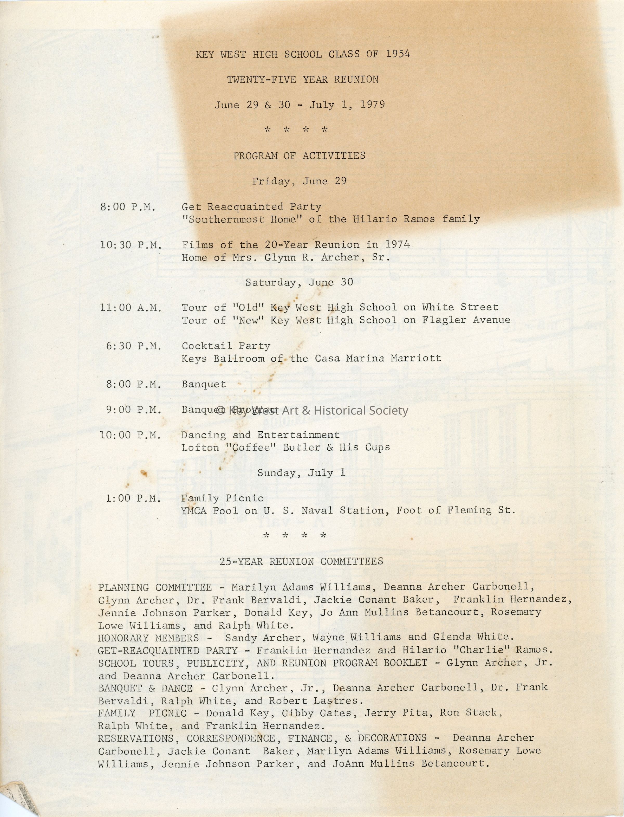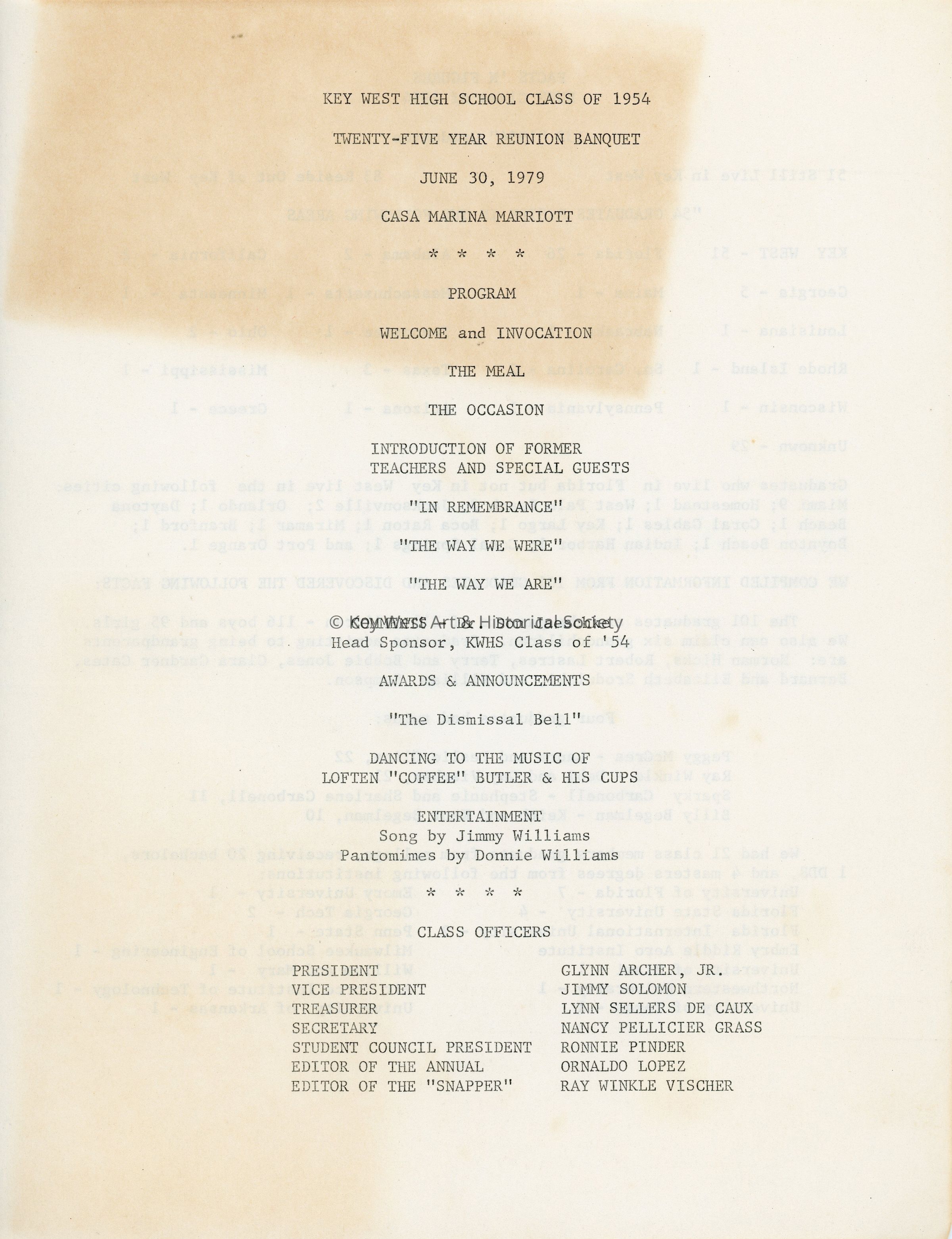 Key West High School Class of 1954 Twenty-Fifth ReunionEntry/Object ID