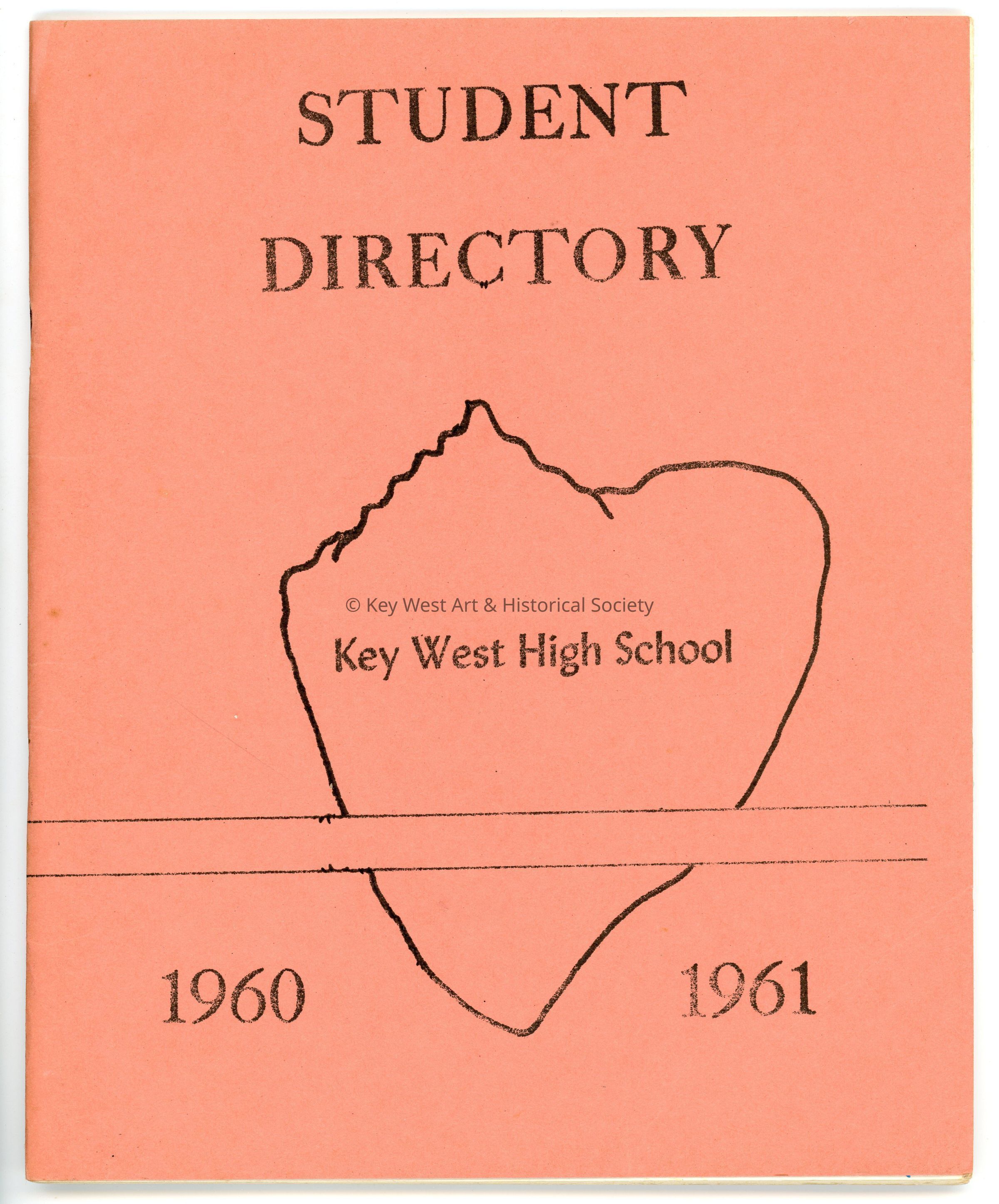 A pink Key West High School student directory for 1960-1961. The directory lists all attending Freshman through Senior class students along with their address, phone number, and home room number.Collection