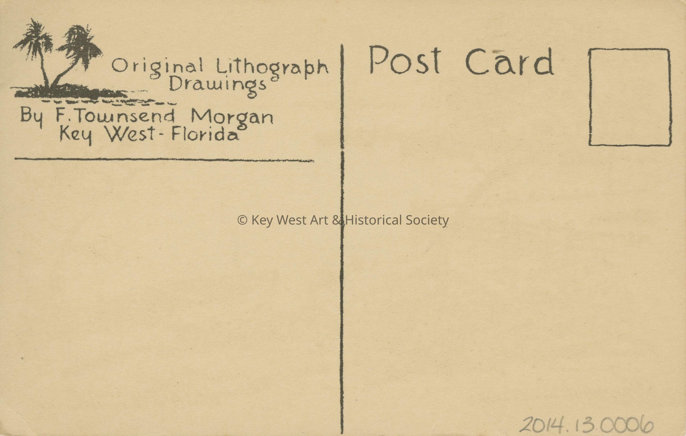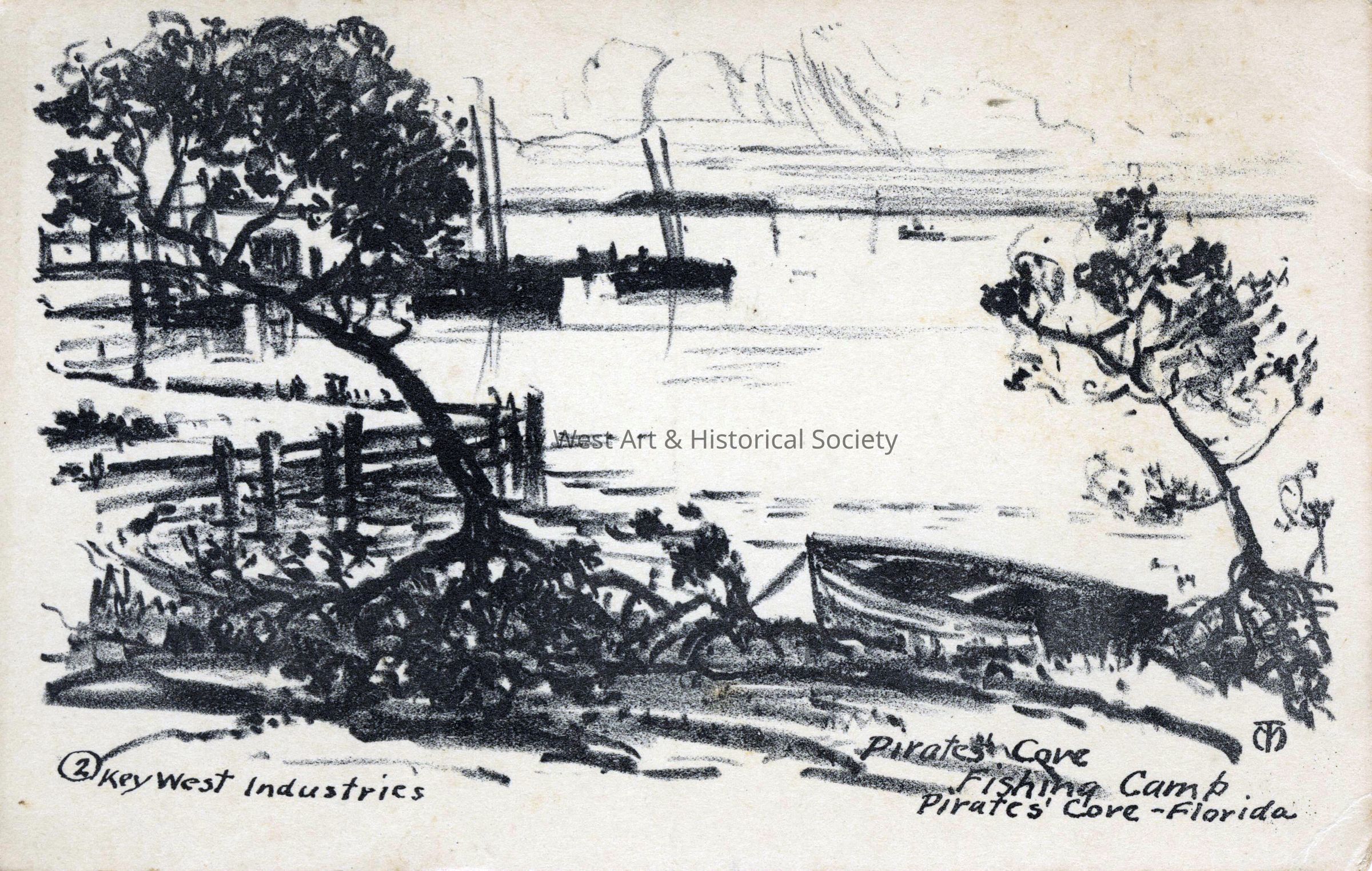 Postcard depicting a sketch of boats taken from a lithograph by Franklin Townsend Morgan. . The caption reads, 'Key West Industries. Pirate's Cove Fishing Camp, Pirate's Cove - Florida’.Collection