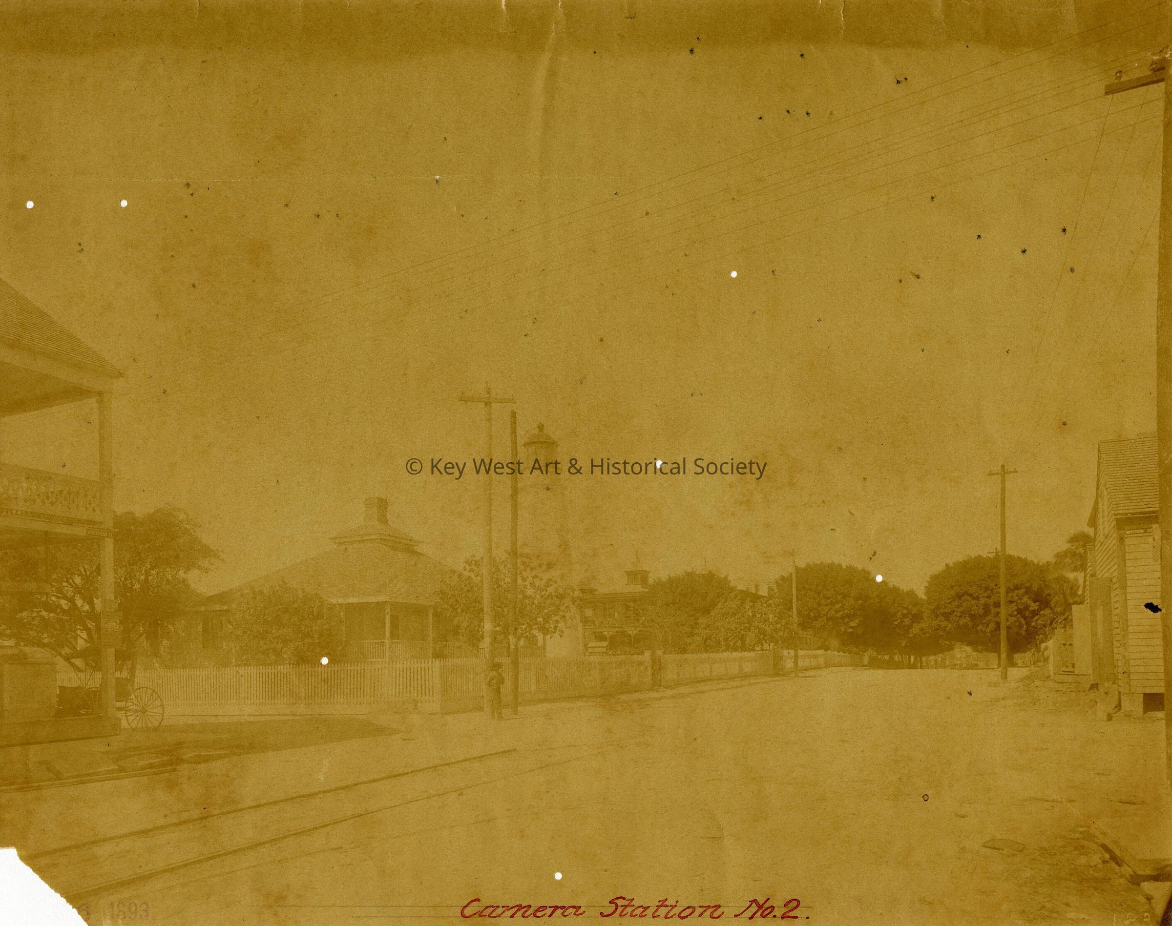 Sepia photograph of the Key West Lighthouse and Keeper's Quarters taken from Camera Station No. 2.Photograph Details