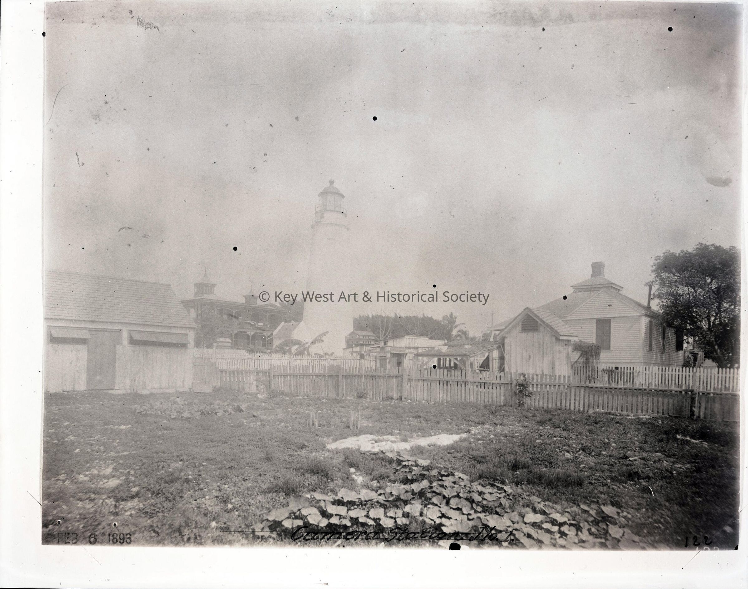 Black and white negative of the Key West Lighthouse and Keeper's Quarters taken from Camera Station No. 1.