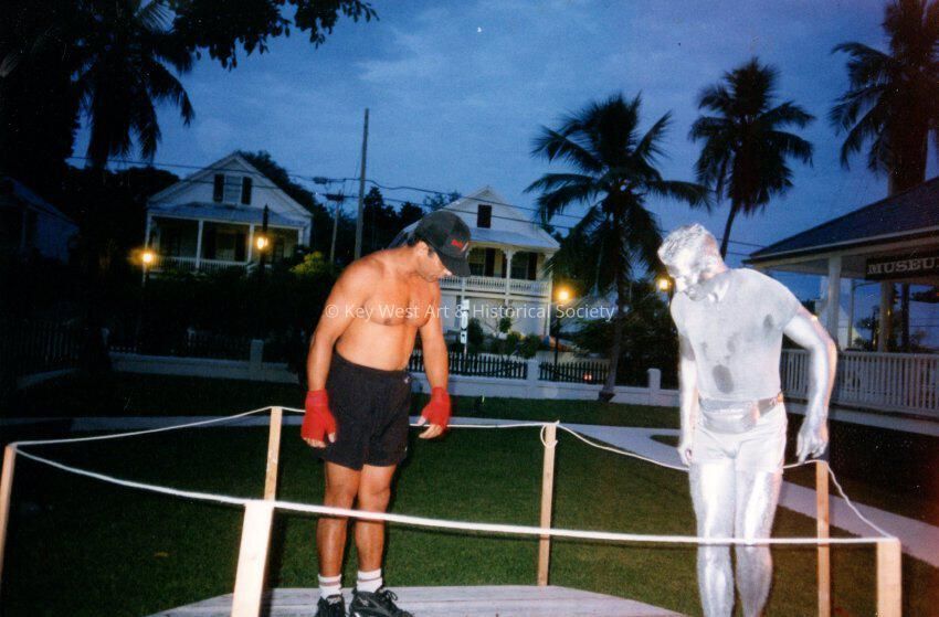 Silverman and fighter at a Key West Lighthouse event.