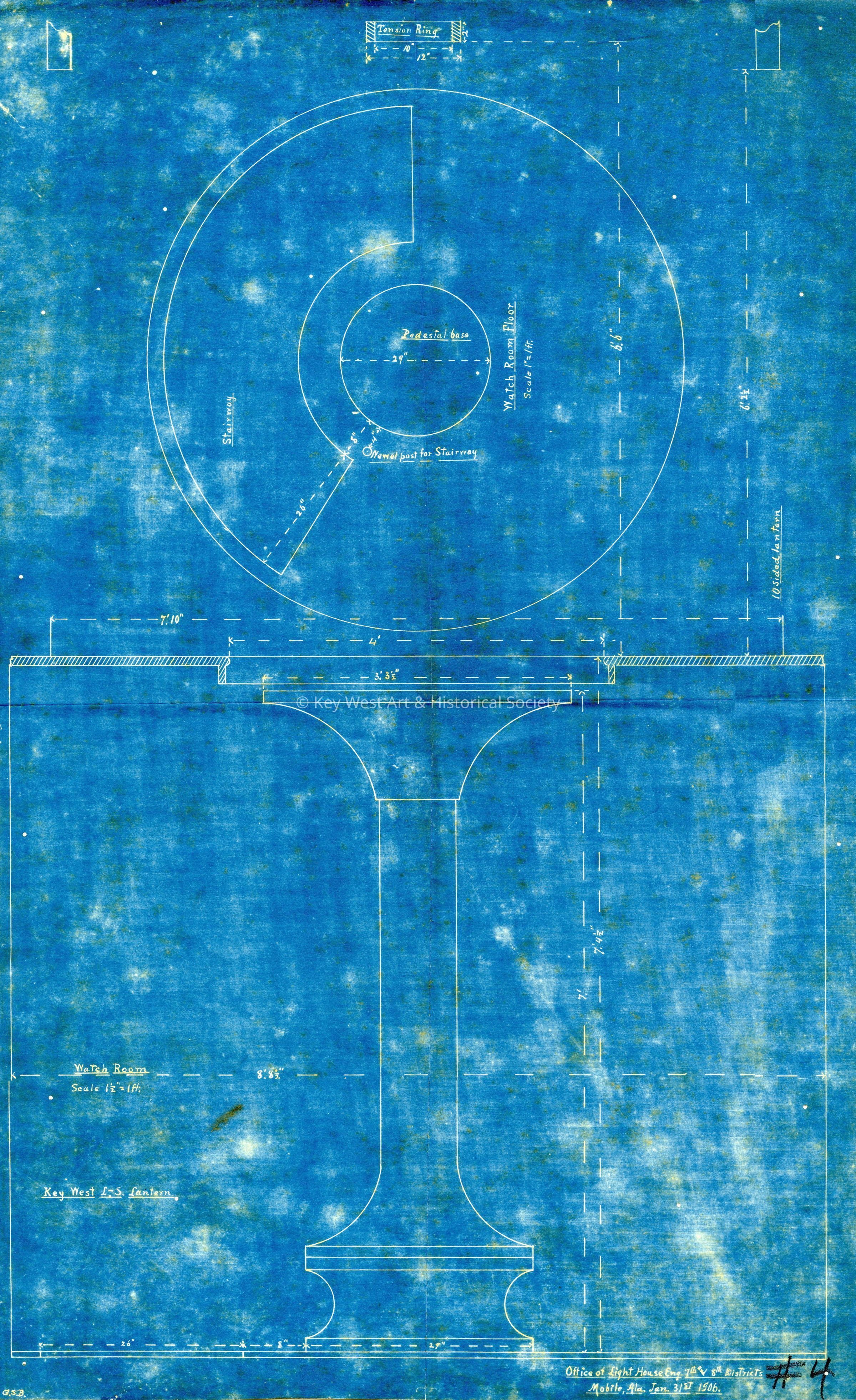 Blueprint drawing titled, 'Key West L-S Lantern' from the Office of Superintendent of Lighthouses Seventh and Eighth District, Mobile, Alabama.Collection