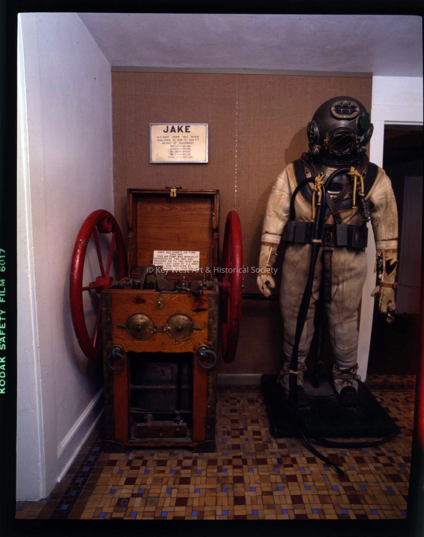 Color negative of the U.S. Navy diver display inside the Keeper's Quarters at the Key West Lighthouse when it served as a military museum.