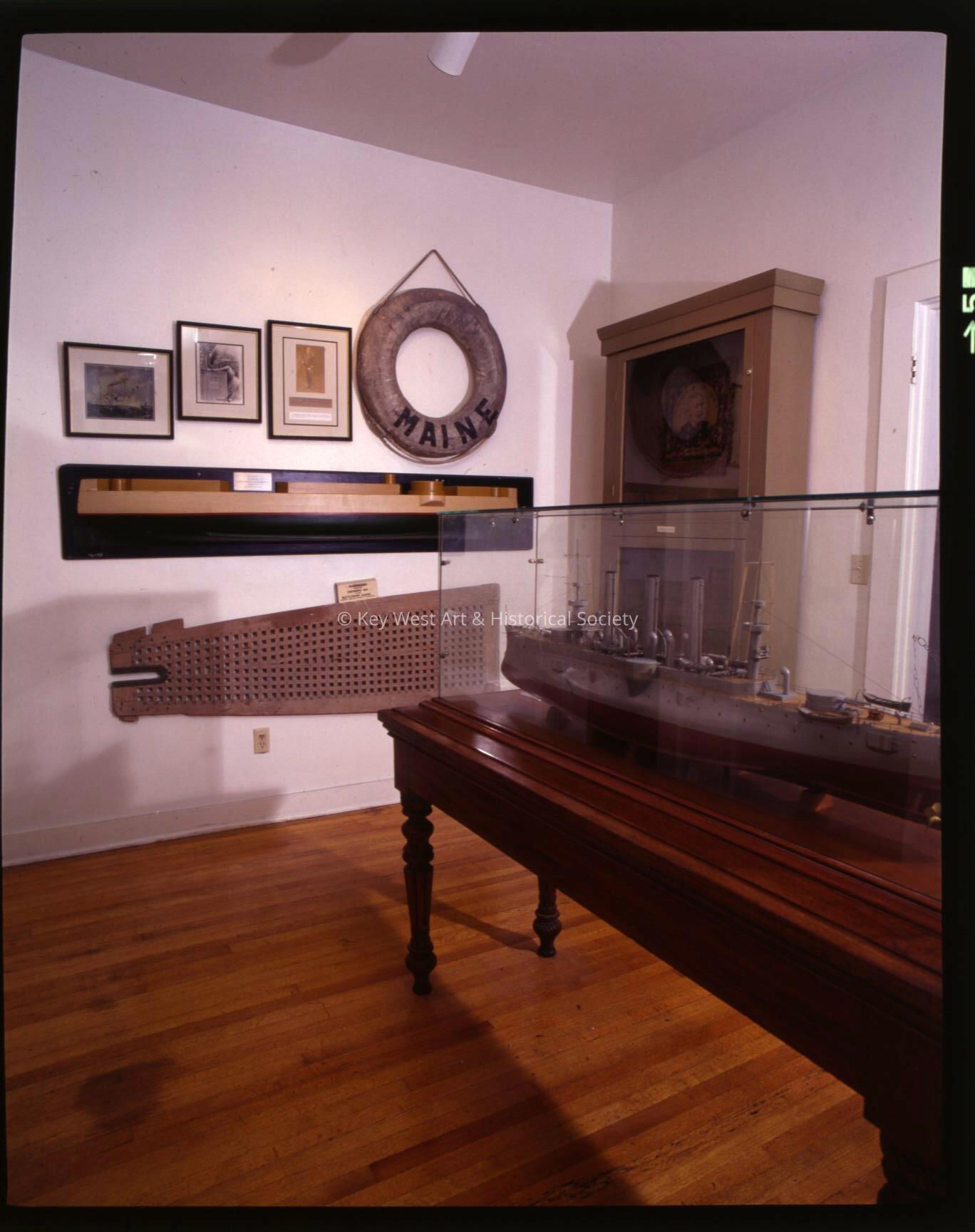 Color negative of the USS MAINE display including the model inside the Keeper's Quarters at the Key West Lighthouse when it served as a military museum.