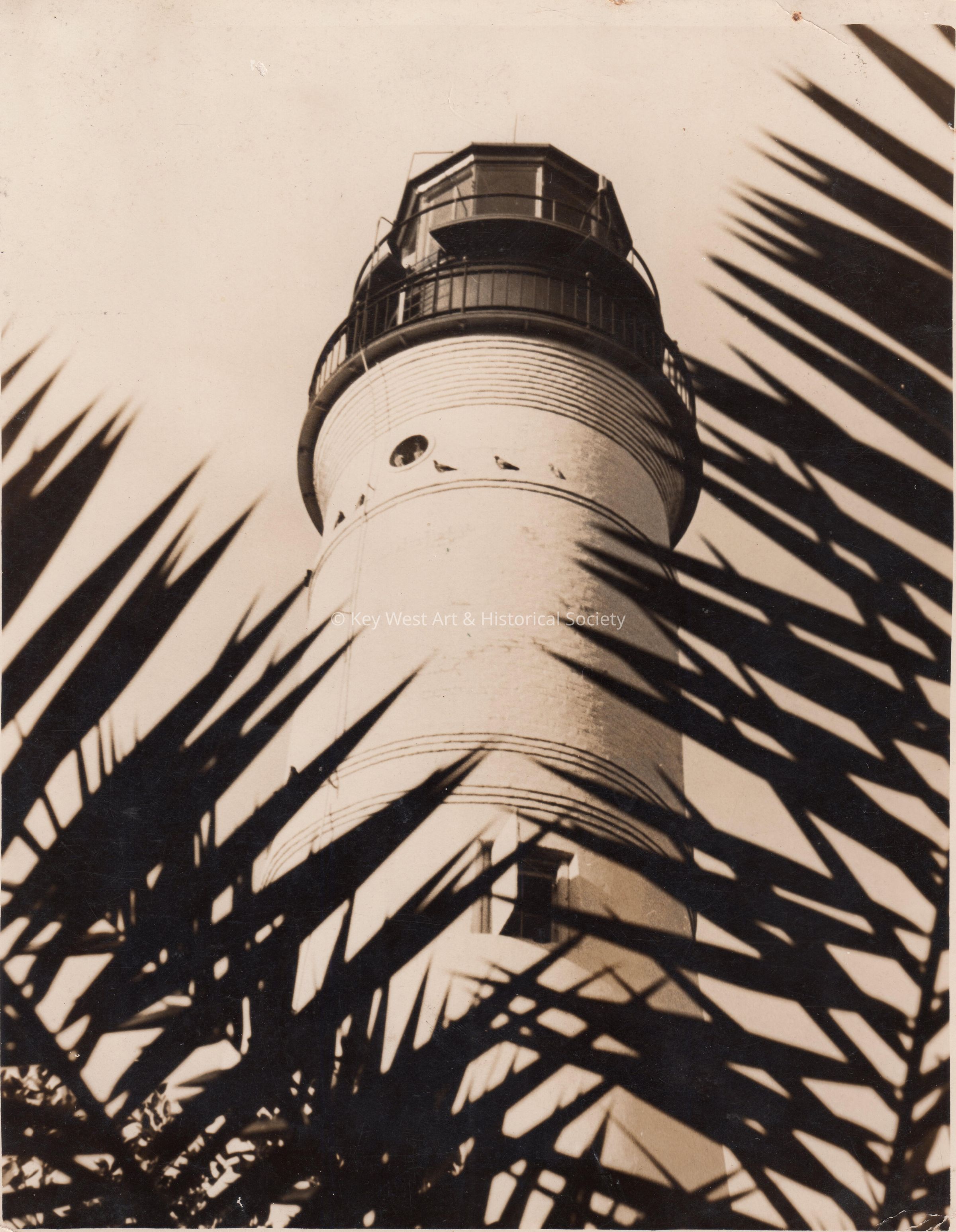 Black and white photograph of the Key West Lighthouse tower.