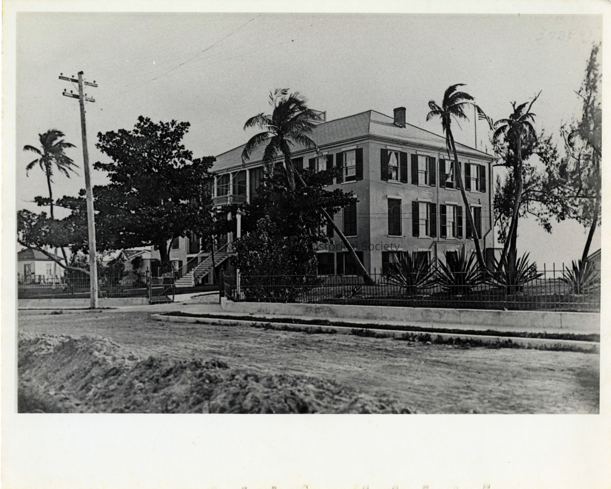Black and white photograph of the Marine Hospital on Emma Street on Naval Station Key West.