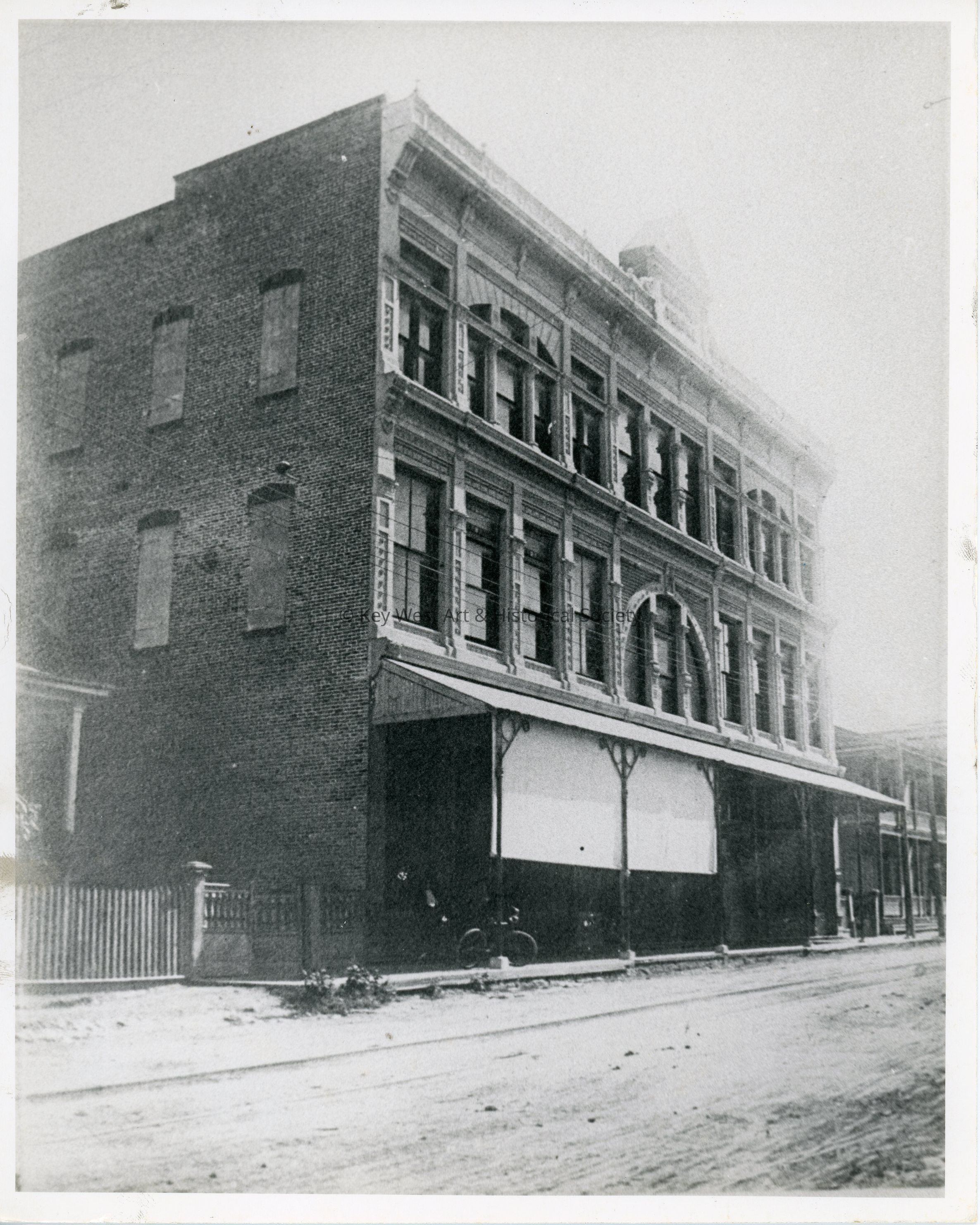 Black and white photograph of the Key West Masonic Temple at 315 Simonton Street.
