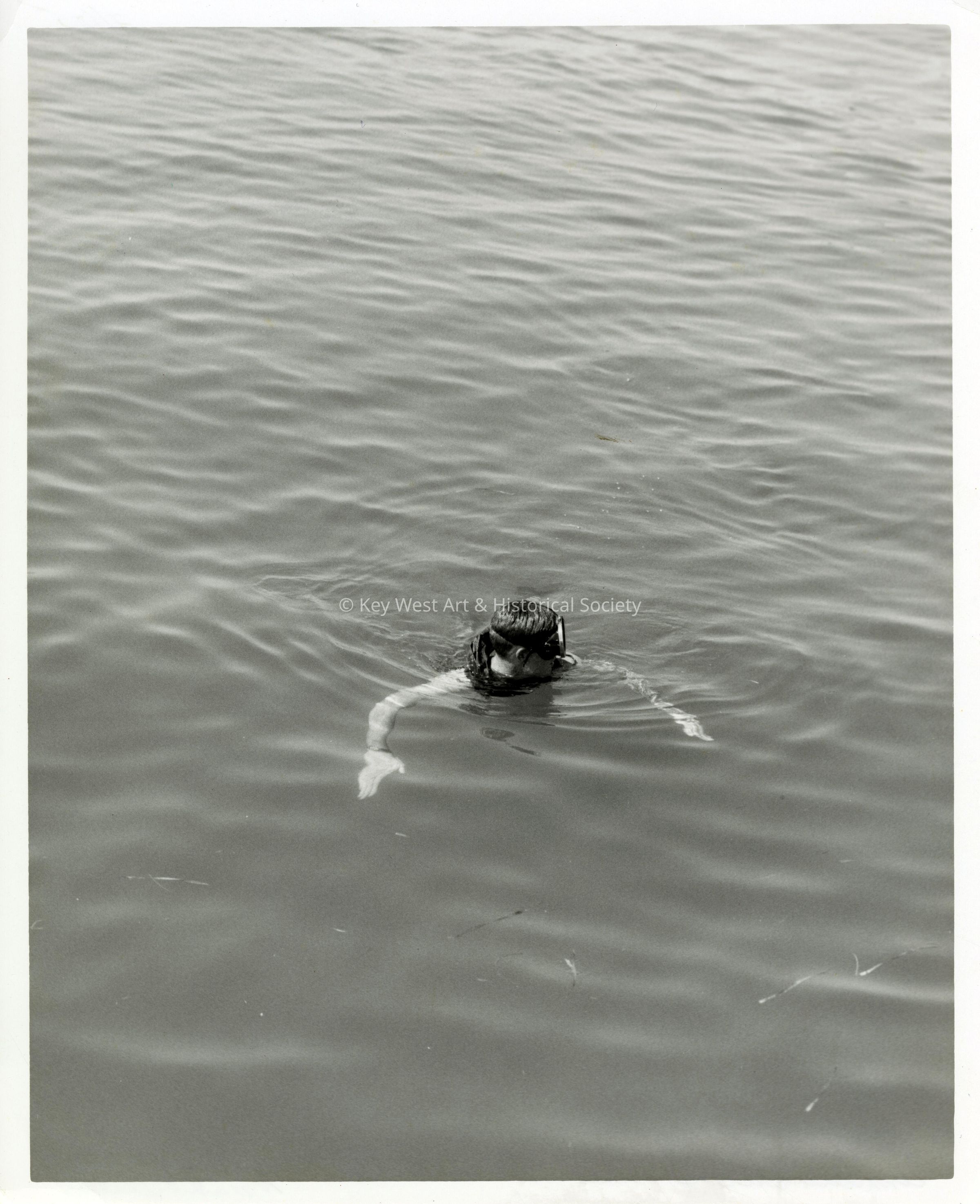 Black and white photograph taken during the Underwater Swimmer demonstration as part of Navy Day Key West.
