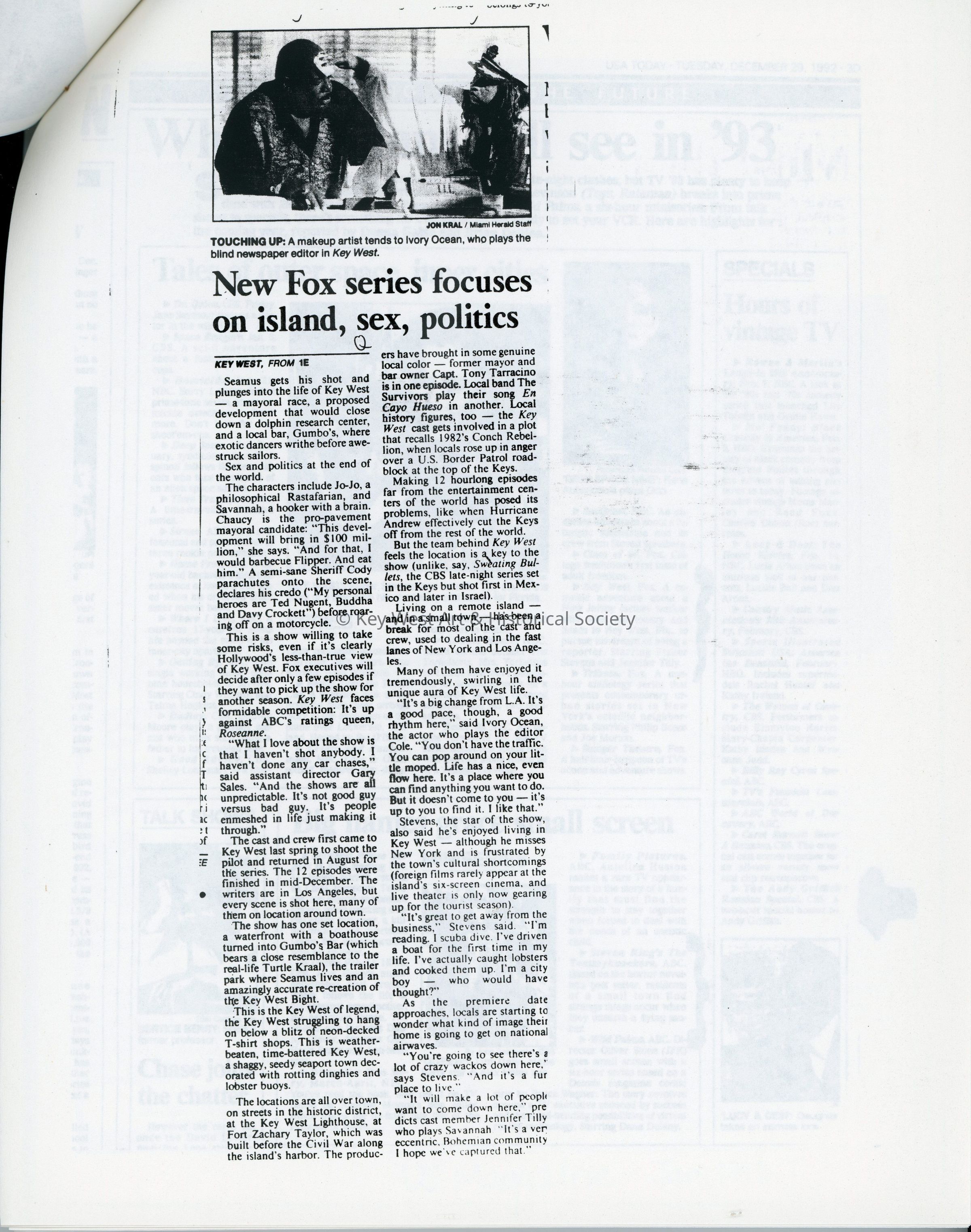Newspaper press releases and reviews of the Viacom television show 'Key West.'