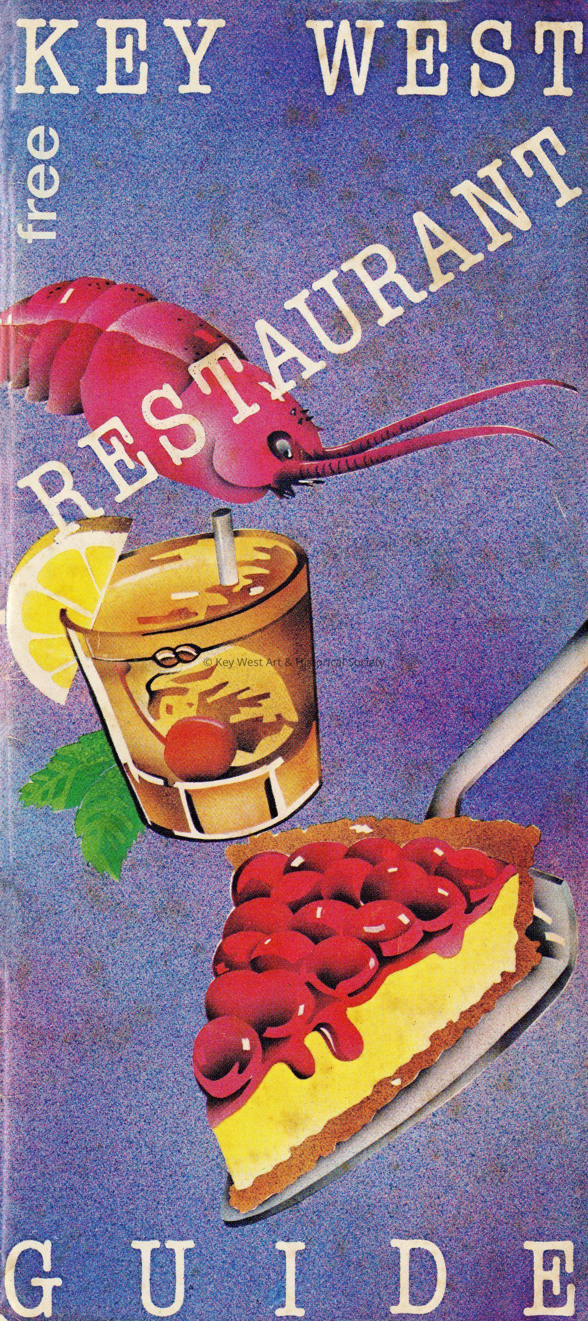 Key West Restaurant Guide brochure with advertisements for several restaurants including Antonia's, Captain Hornblower's, Chez Nancy, Claire, Hukilau Restaurant & Lounge, La Bodega, La Raclette, Martha's, The Pier House and The Queen's Table.Collection