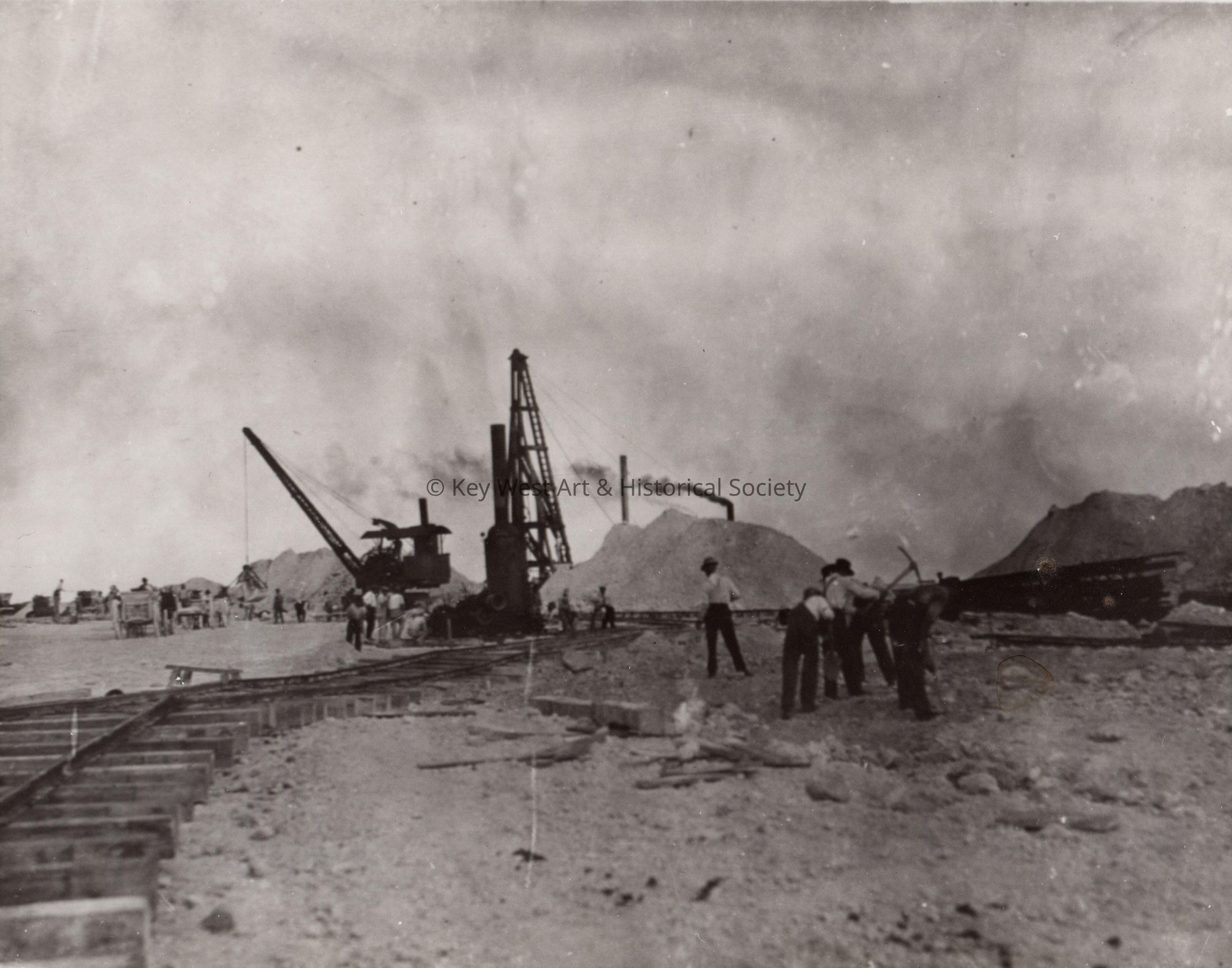 Black and white photograph taken during the construction of the Submarine Base Mole at Naval Station Key West.