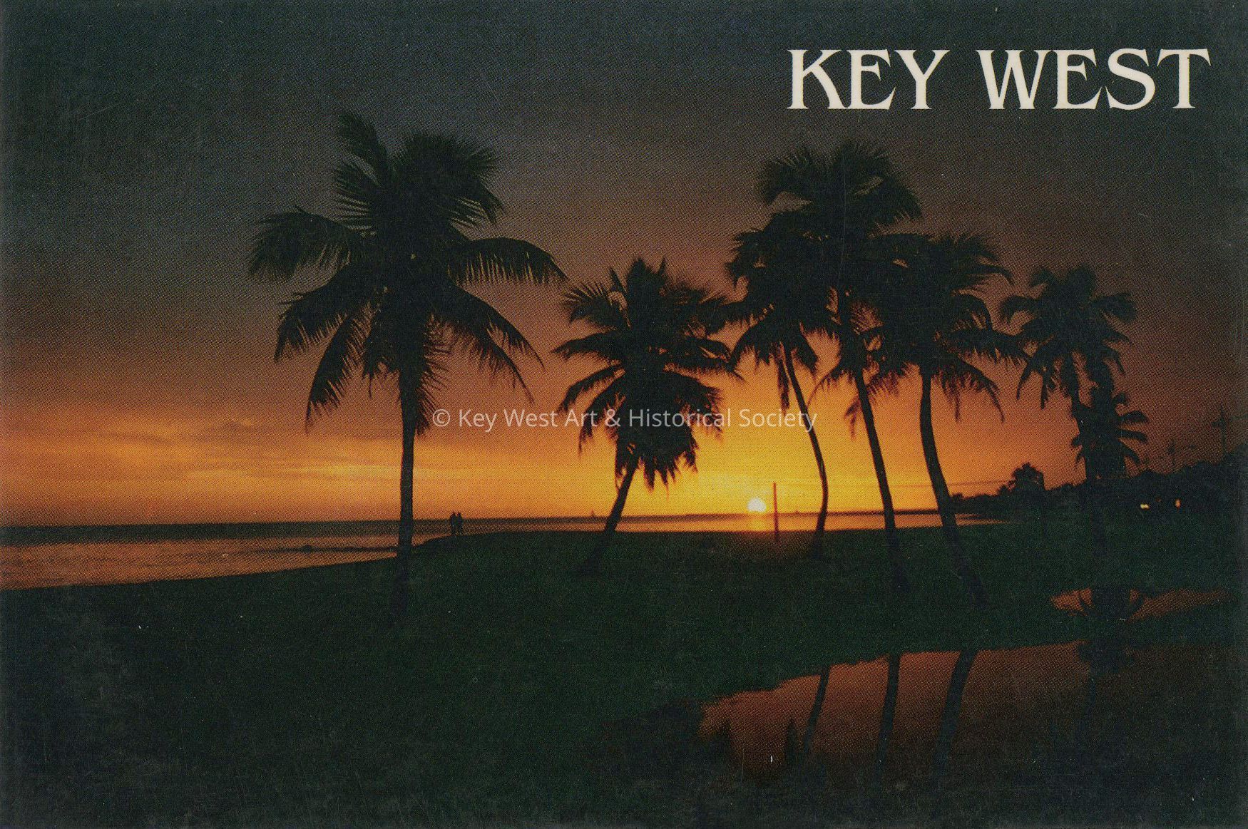 Postcard of a Key West sunset taken from Smathers Beach. Notation on verso, 'Sunset on a beach on the South Side of the island of Key West.'Subject Place