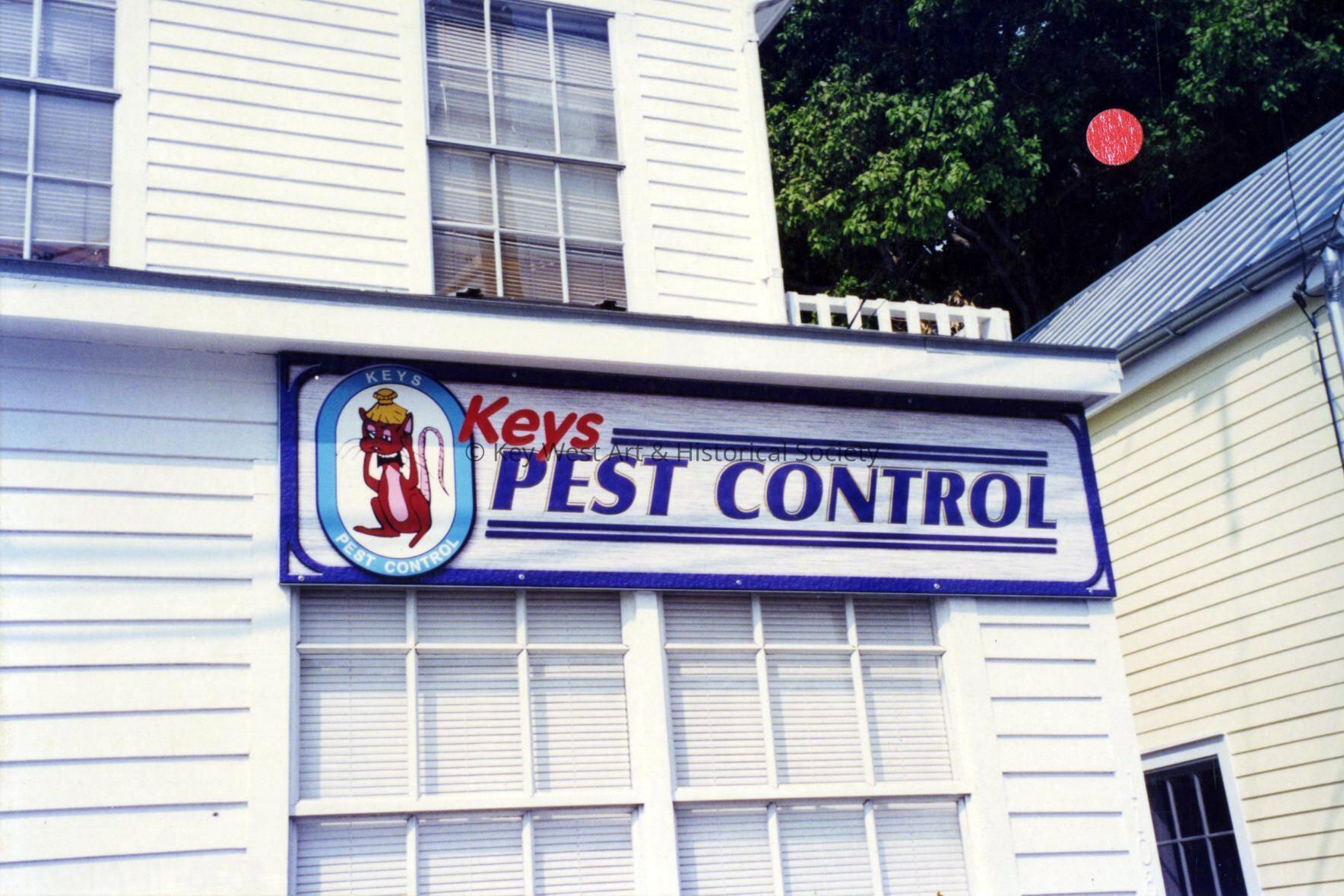 Color photograph taken by historian James M. Goode of the Keys Pest Control sign during a trip to Key West in August 2001. Printed from Roll 16.