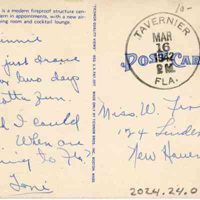 Postcard depicting the La Concha Hotel, Key West, Florida. " La Concha Hotel, is a modern fireproof structure centrally located and modern in appointments, with a new air-conditioned lobby, dinging room and cocktail lounge."Collection