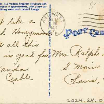 Postcard depicting the La Concha Hotel, Key West, Florida. " La Concha Hotel, is a modern fireproof structure centrally located and modern in appointments, with a new air-conditioned lobby, dinging room and cocktail lounge."Collection