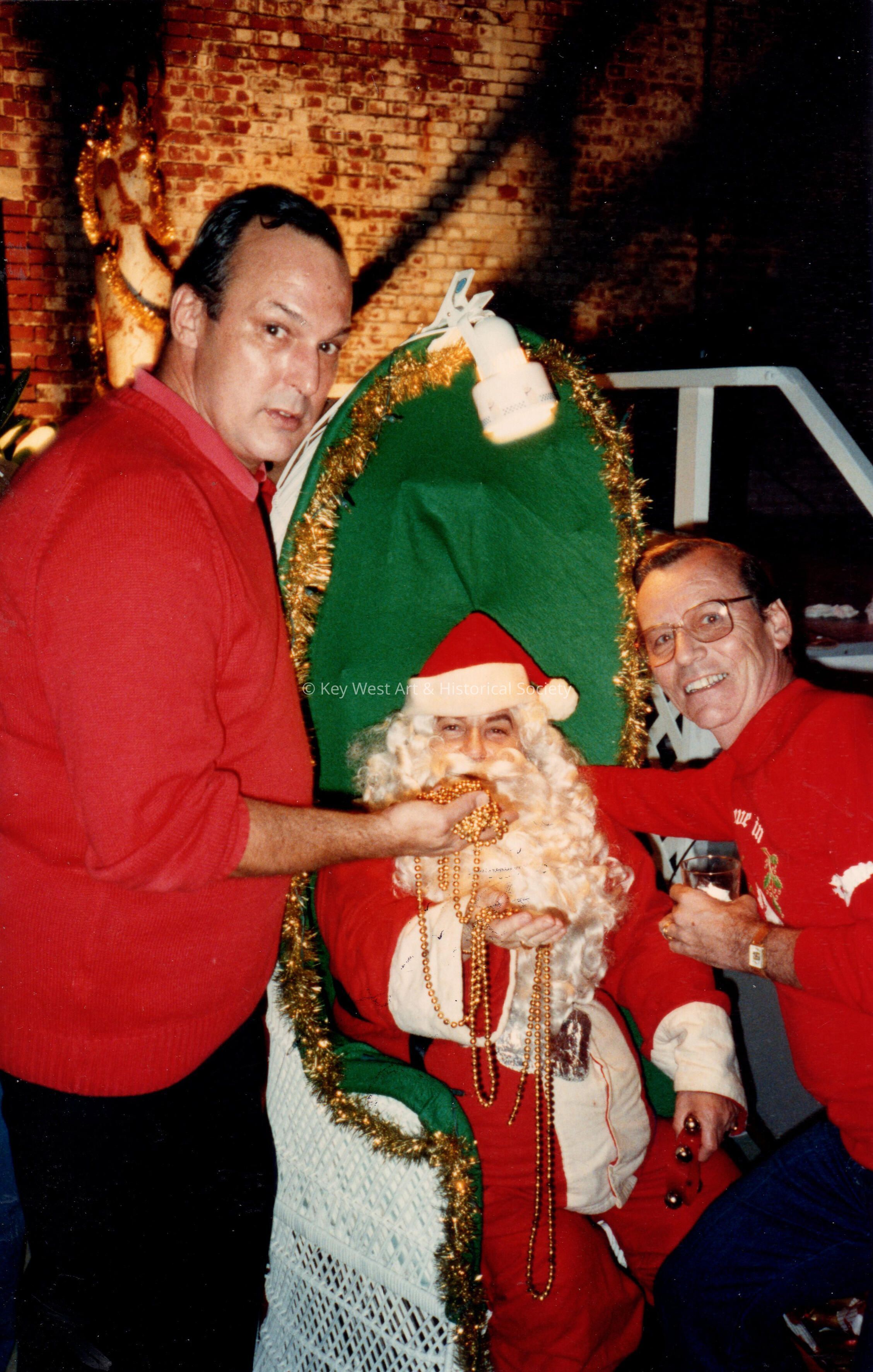 East Martello event, circa 1987-1988, Lee Dodez, Larry Harvey (as Santa Claus), and Bob Warren.Collection