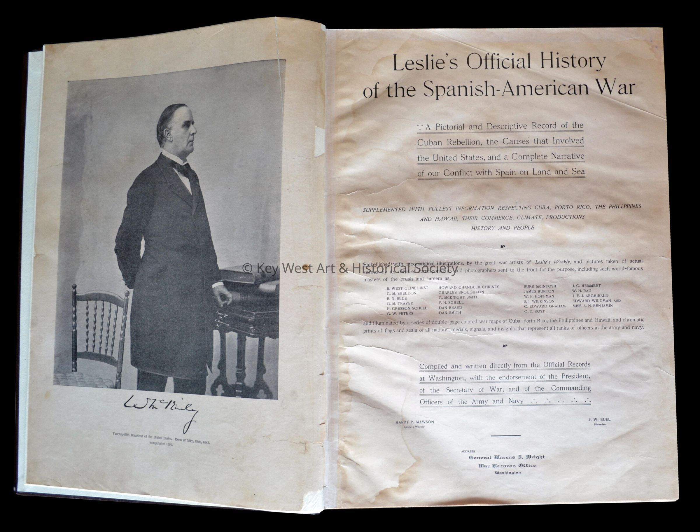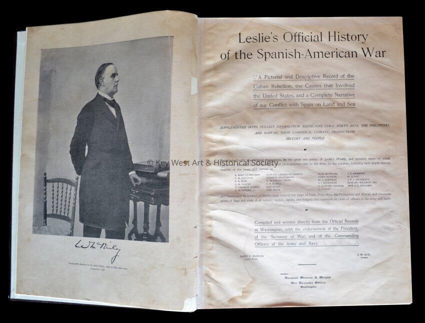 Hardcover book entitled, 'Leslie's Official History of the Spanish-American War: A Pictorial and Descriptive Record of the Cuban Rebellion, the Causes that Involved the United States, and a Complete Narrative of our Conflict with Spain on Land and Sea'.Collection