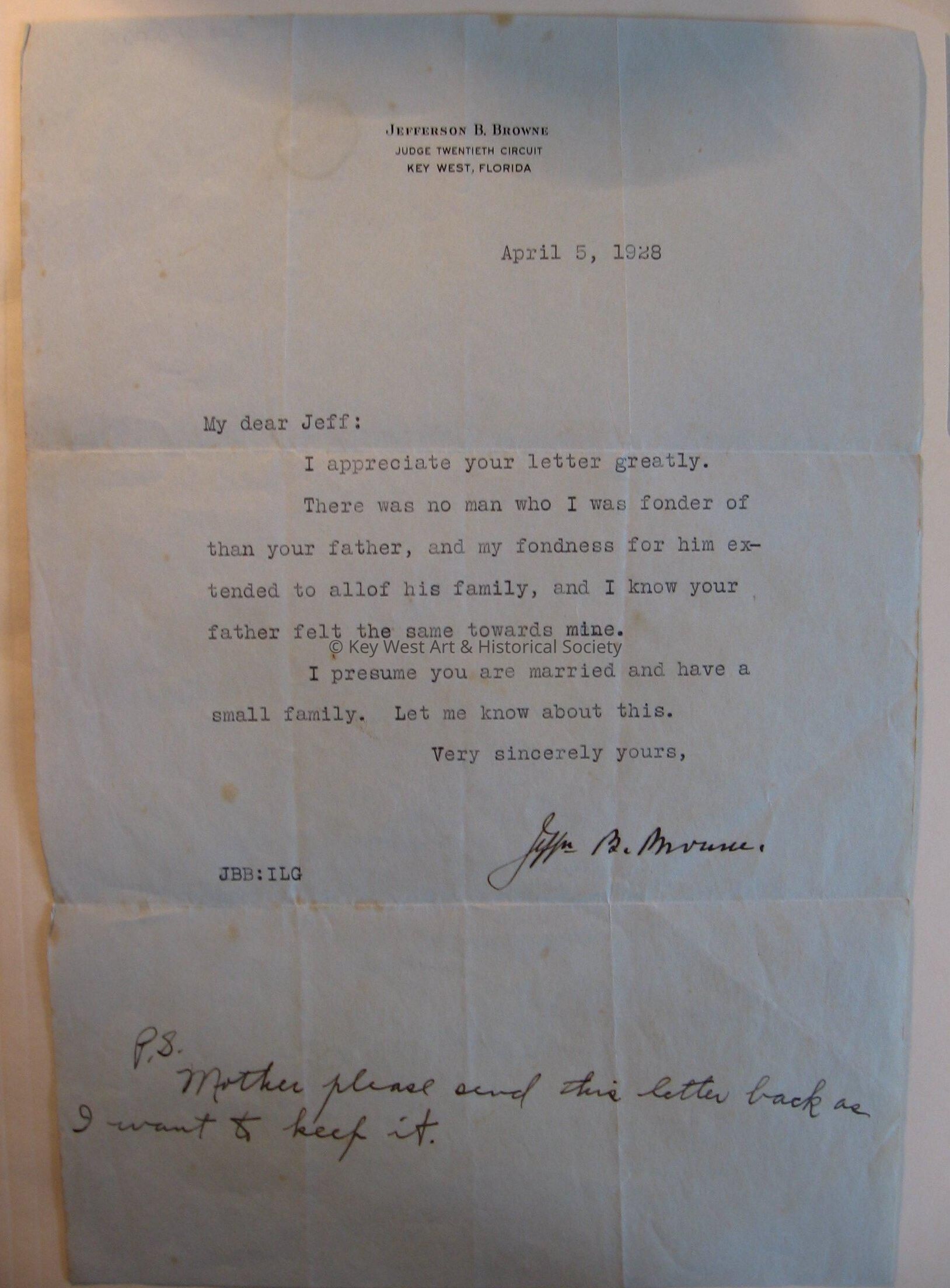 Letter from Jefferson B. Browne to Jefferson SawyerEntry/Object ID