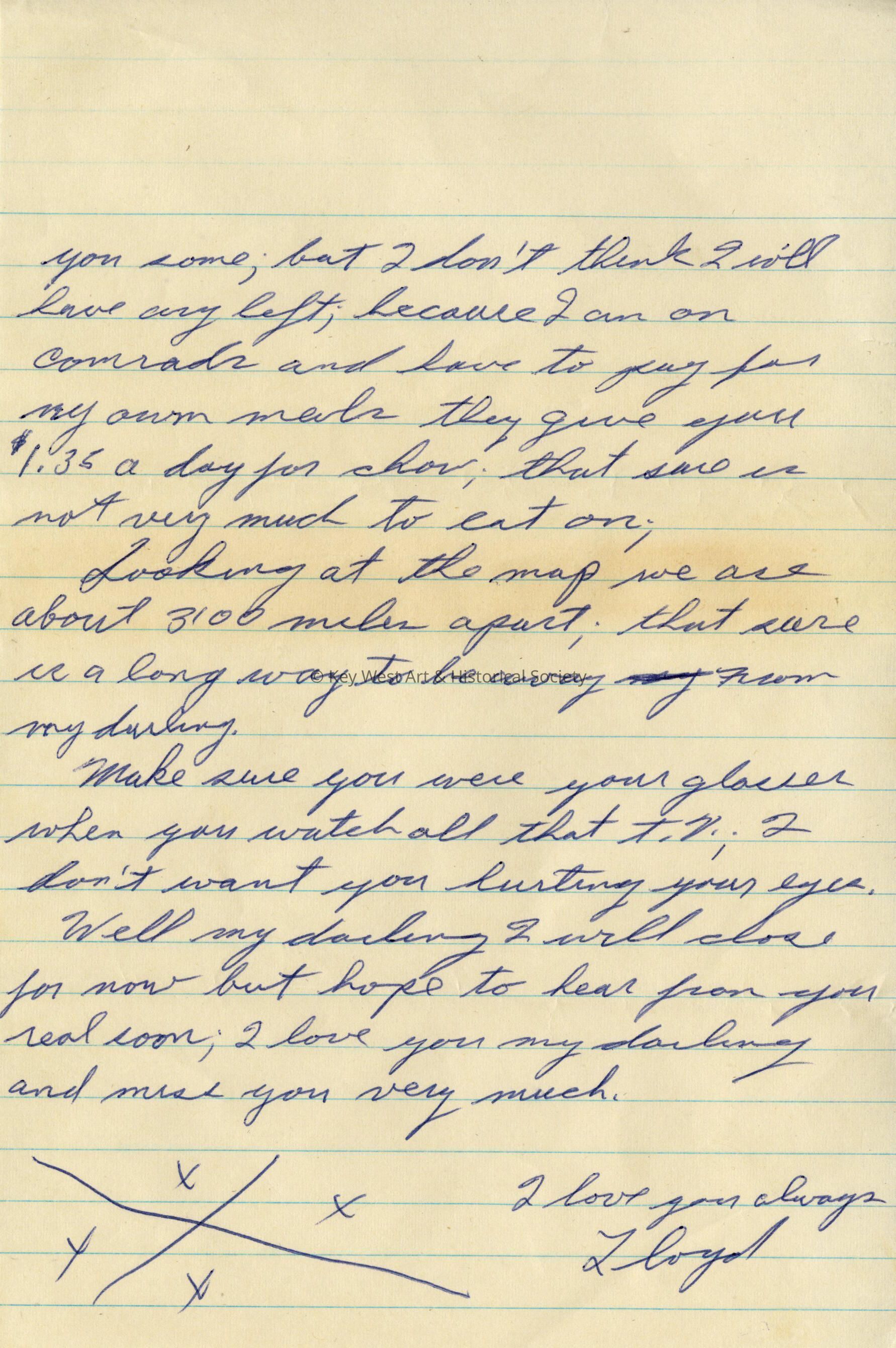 Handwritten letter from Lloyd Pine to his wife, Irma Pine, during the run up to the Cuban Missile Crisis. Pine was stationed at Naval Air Station Key West.