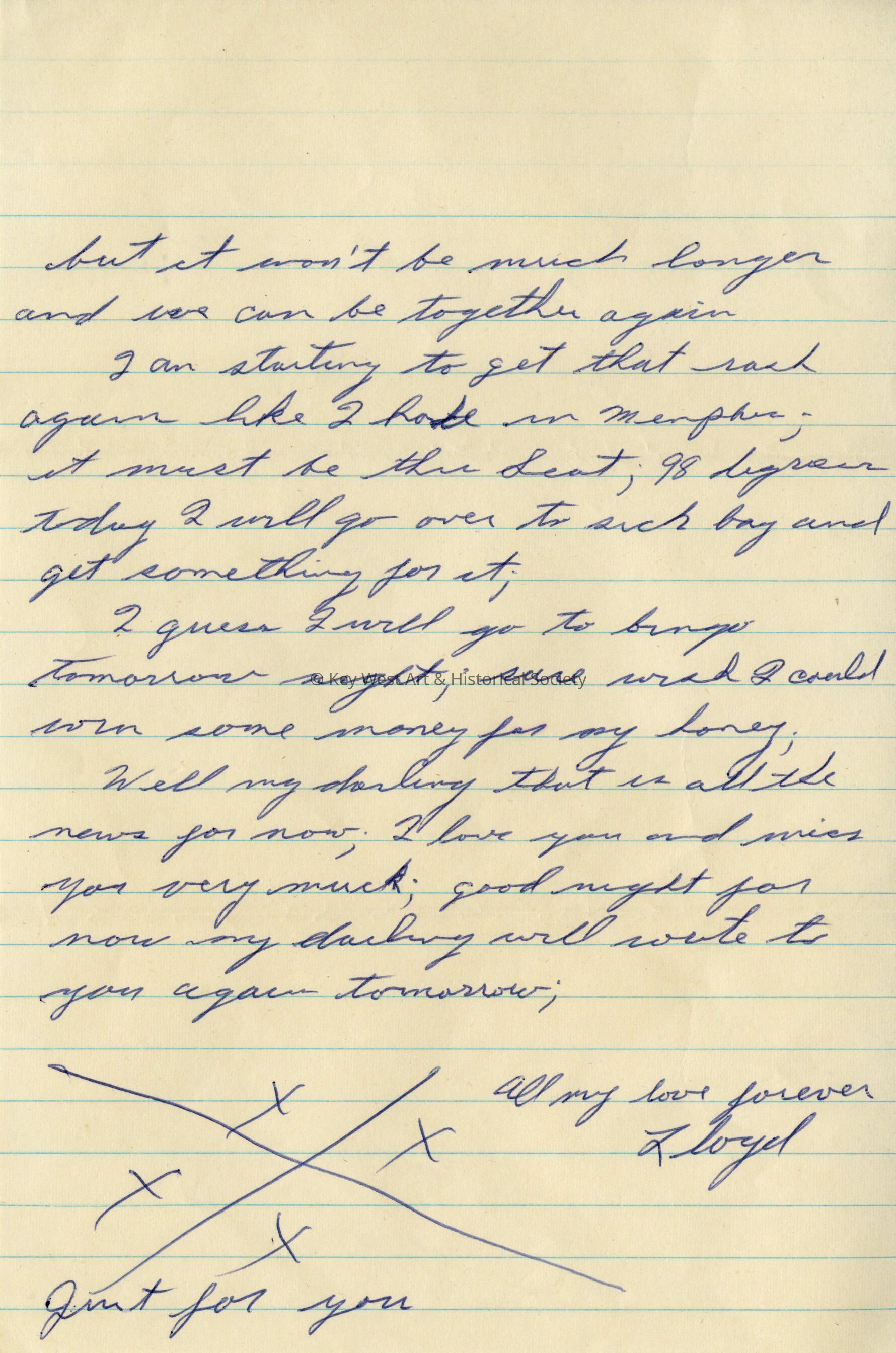 Handwritten letter from Lloyd Pine to his wife, Irma Pine, during the run up to the Cuban Missile Crisis. Pine was stationed at Naval Air Station Key West.