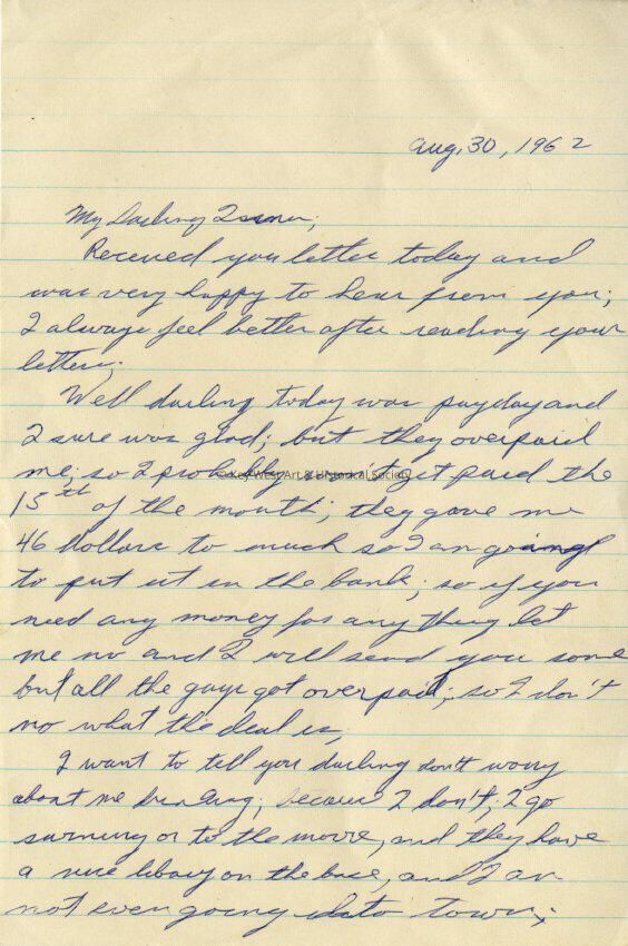 Handwritten letter from Lloyd Pine to his wife, Irma Pine, during the run up to the Cuban Missile Crisis. Pine was stationed at Naval Air Station Key West.