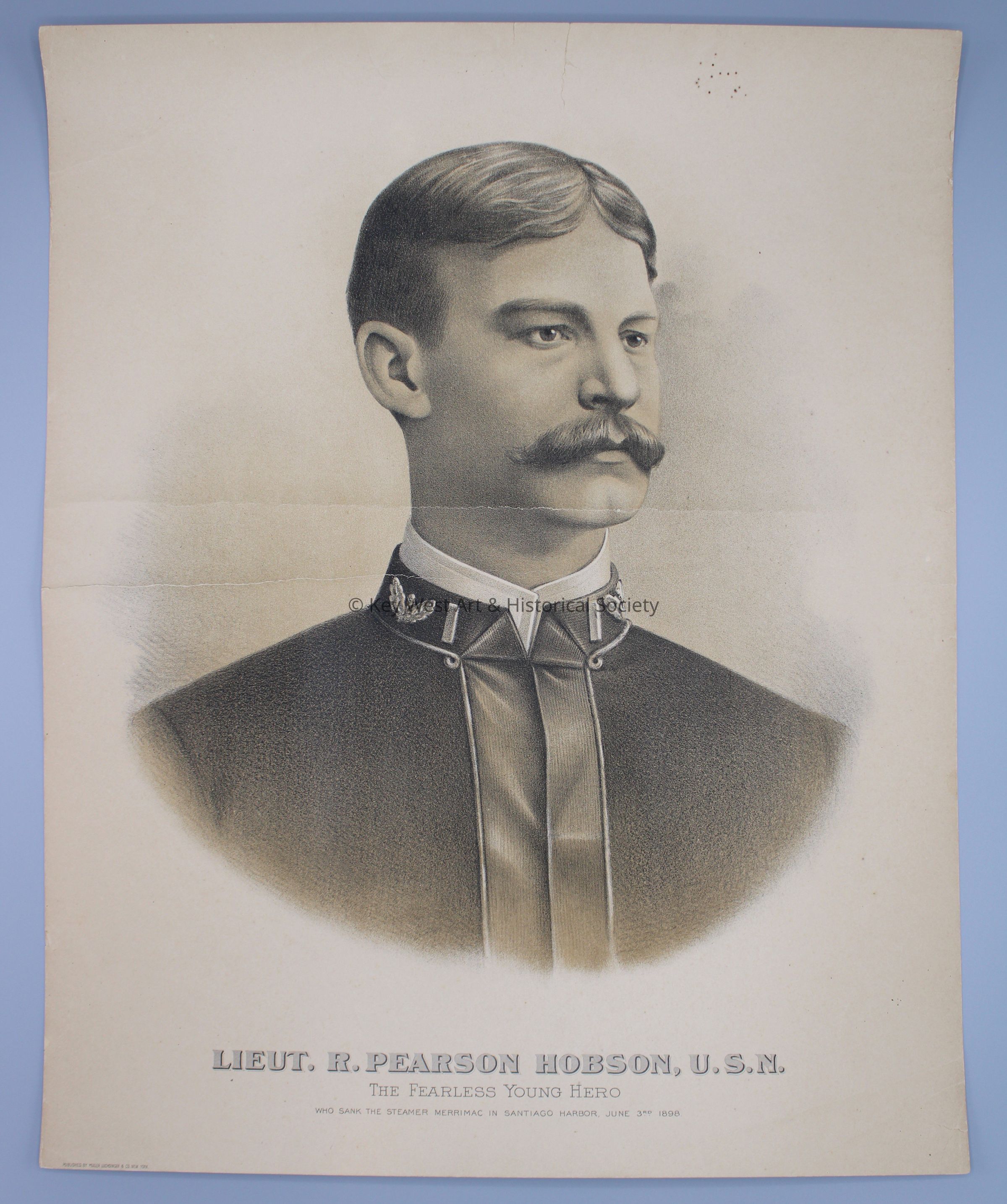 Black and white print of a portrait of Lieutenant Richmond Pearson Hobson, 'The Fearless Young Hero Who Sank the Steamer Merrimac in Santiago Harbor, June 3rd 1898.'Collection