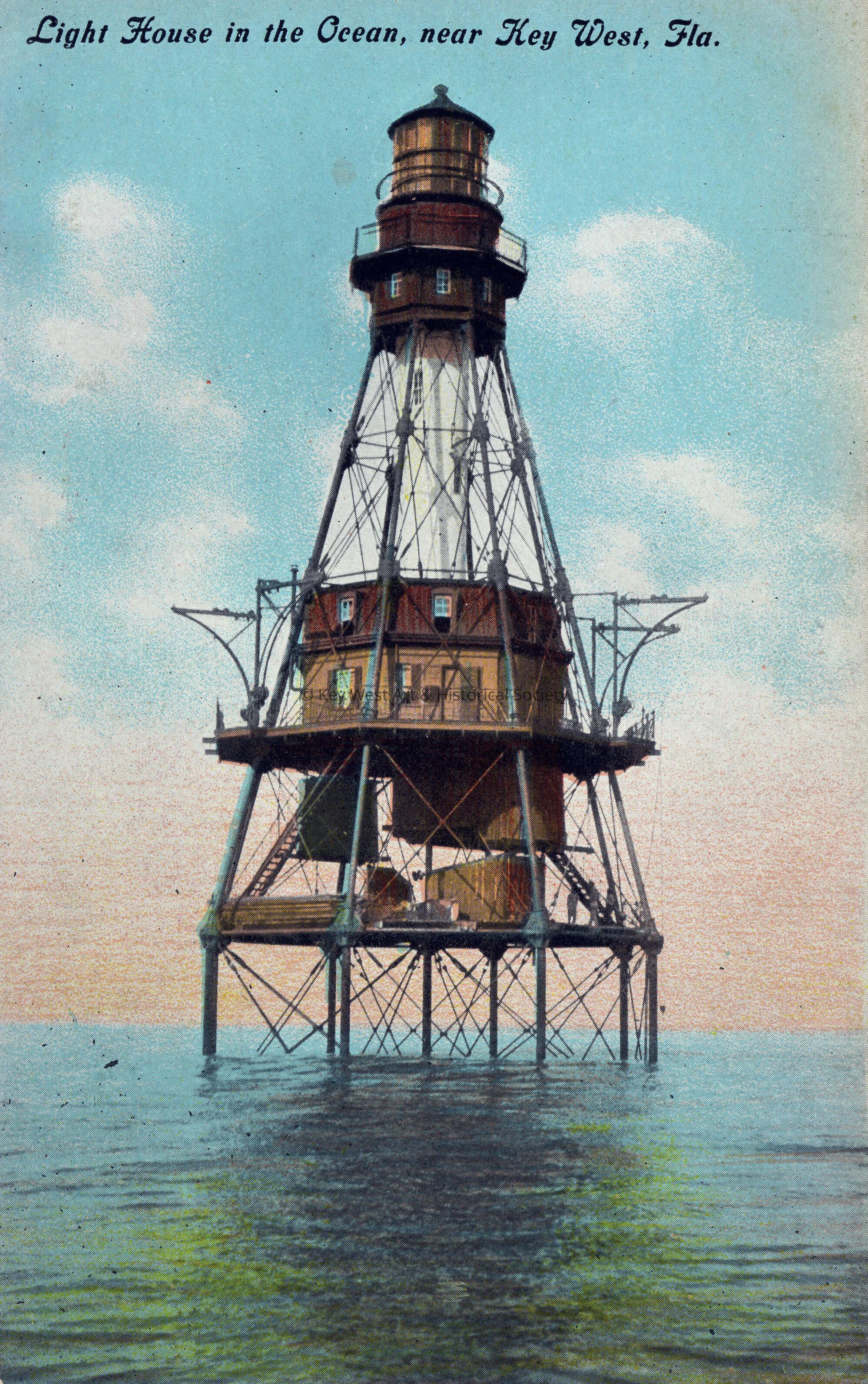 Postcard of American Shoal Lighthouse near Sugarloaf Key. Caption reads, 'Light House in the Ocean, near Key West, Fla.'Subject Place