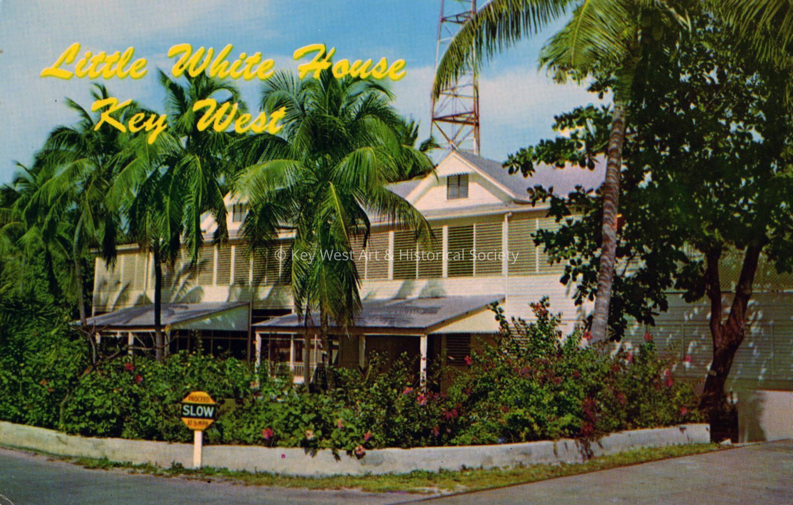 Postcard depicting the Little White House at 111 Front Street in present-day Truman Annex . The caption reads, ‘Little White House Key West’. Notation on verso, 'The Little White House, at Key West, Florida'.Subject Person/Organization