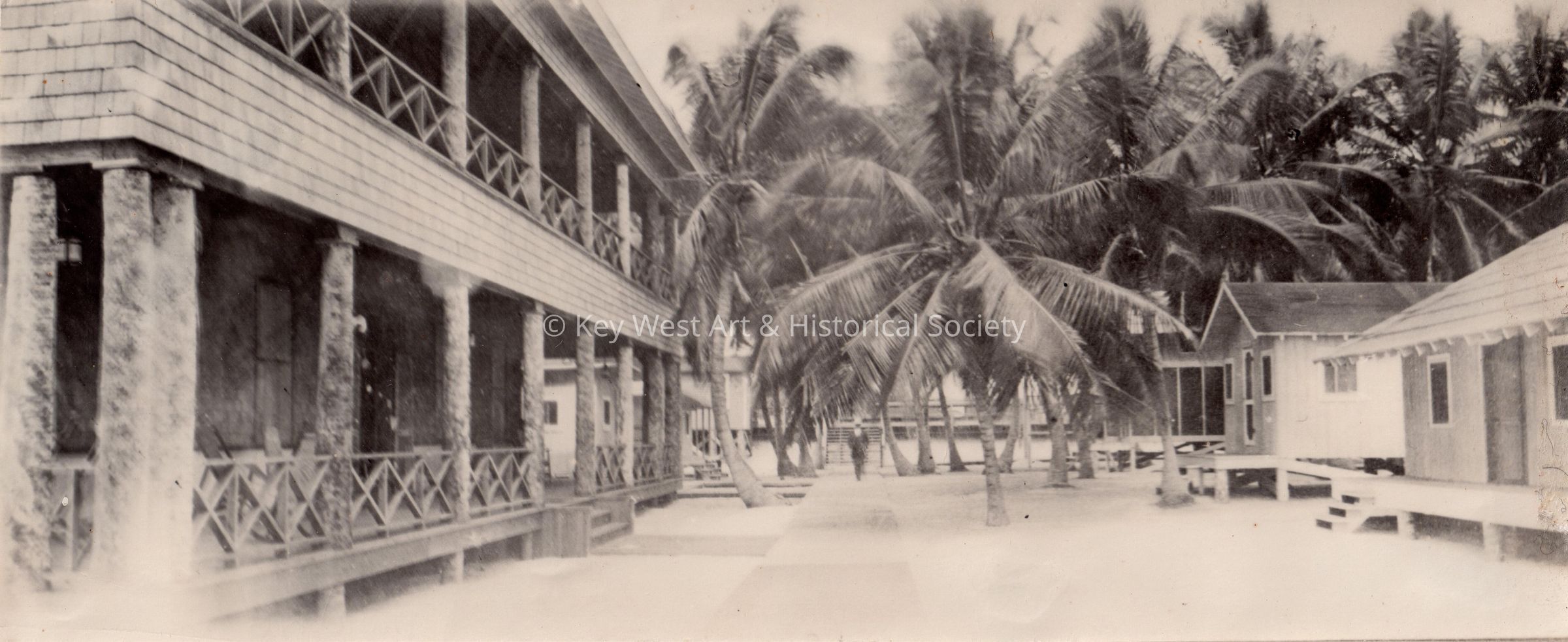 Black and white photograph of the Long Key Fishing Camp in Islamorada. Originally built as housing by Henry Flagler for his Overseas Railway, it was converted to a fishing resort once construction was completed in the Upper Keys. It was destroyed by the Labor Day Hurricane of 1935.