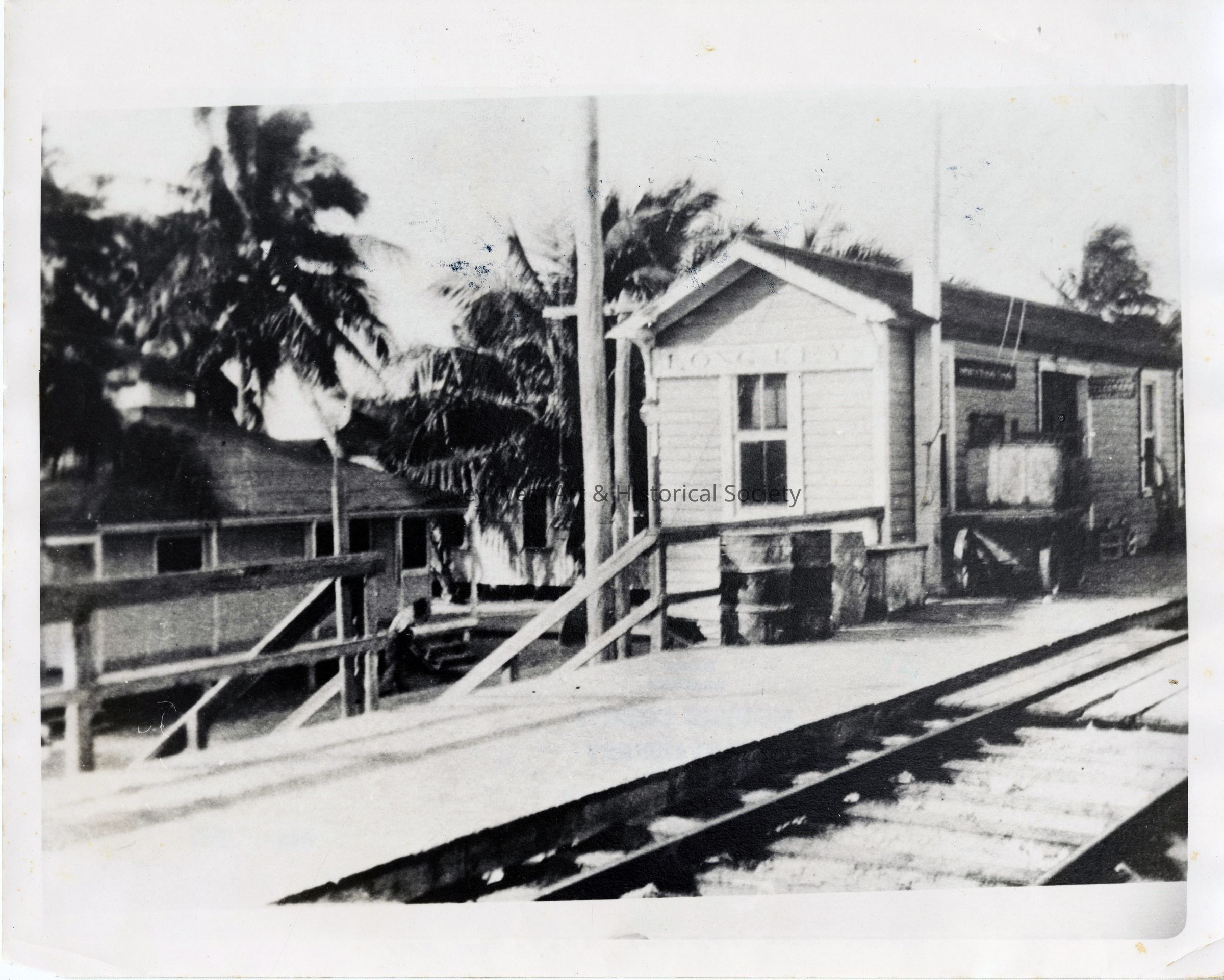 Black and white photograph of the Florida East Coast Railway's Long Key train station and platform.