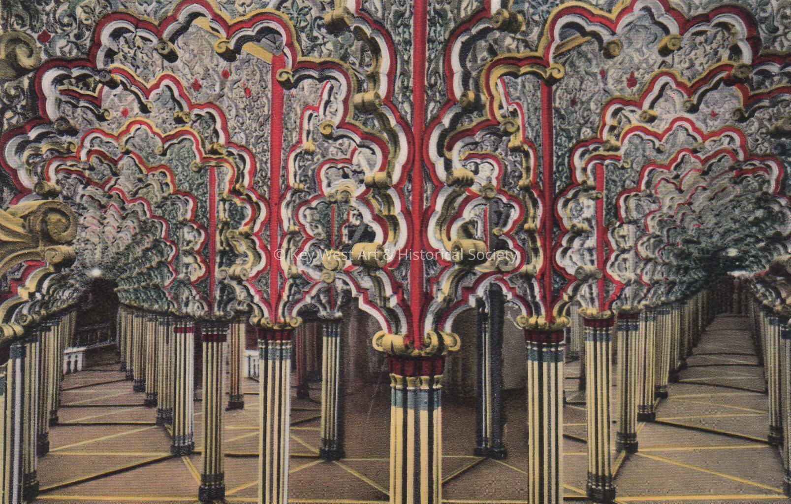Postcard depicting ornate columns. The description on the verso reads, ‘Luzern – Gletschergarten. Labyrinth (Spiegelsaal).’Collection