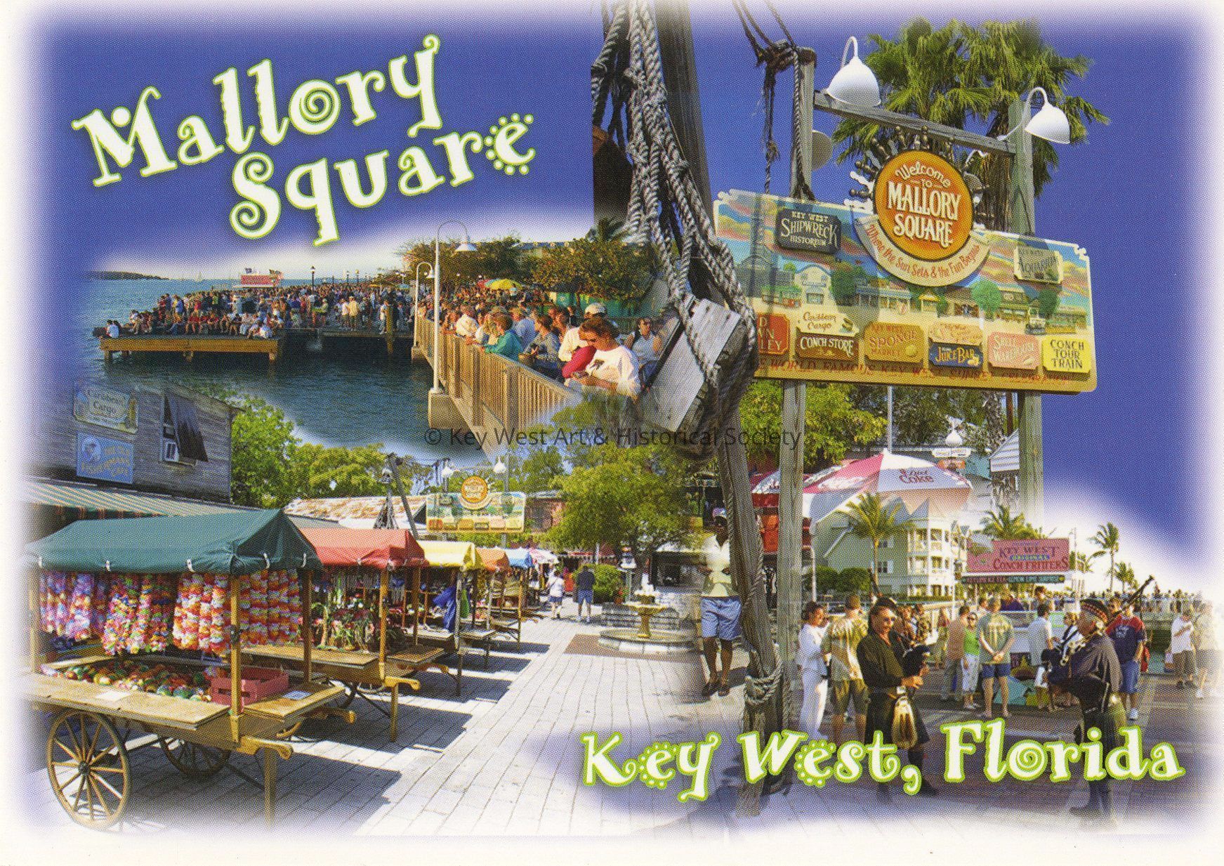 Postcard depicting several views of attractions in and around Mallory Square.Subject Place