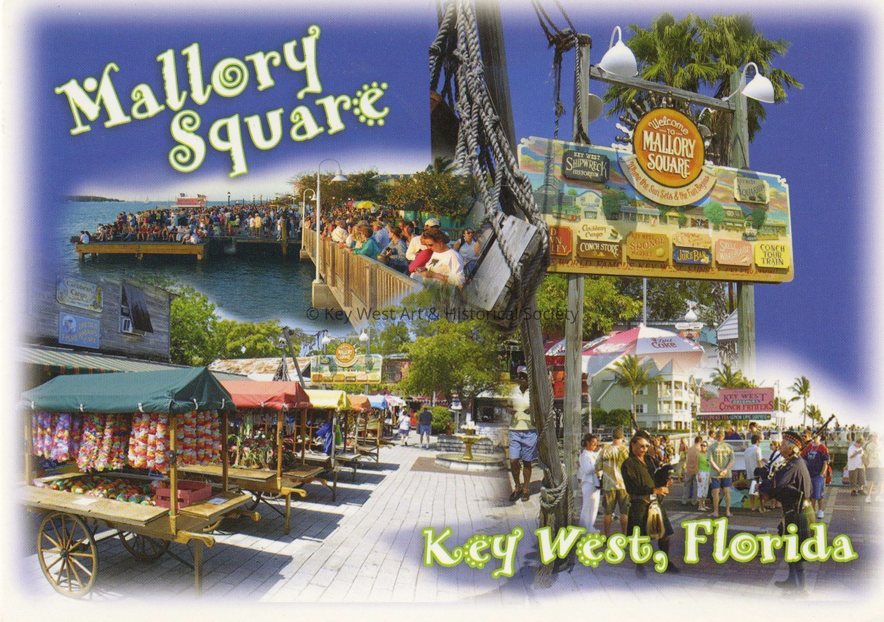 Postcard depicting several views of attractions in and around Mallory Square.Subject Place