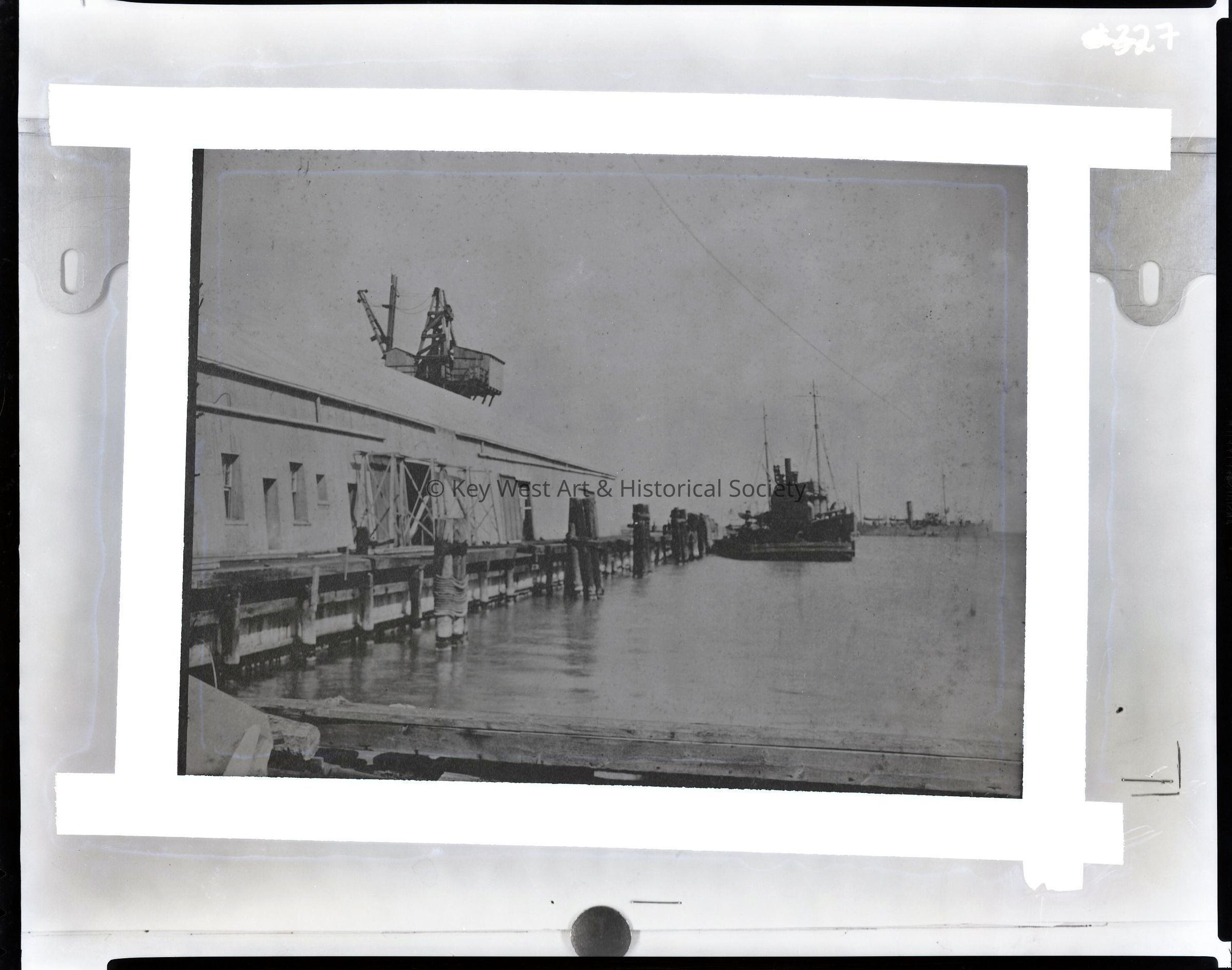 Black and white negative of ships at the Mallory Steamship Dock.