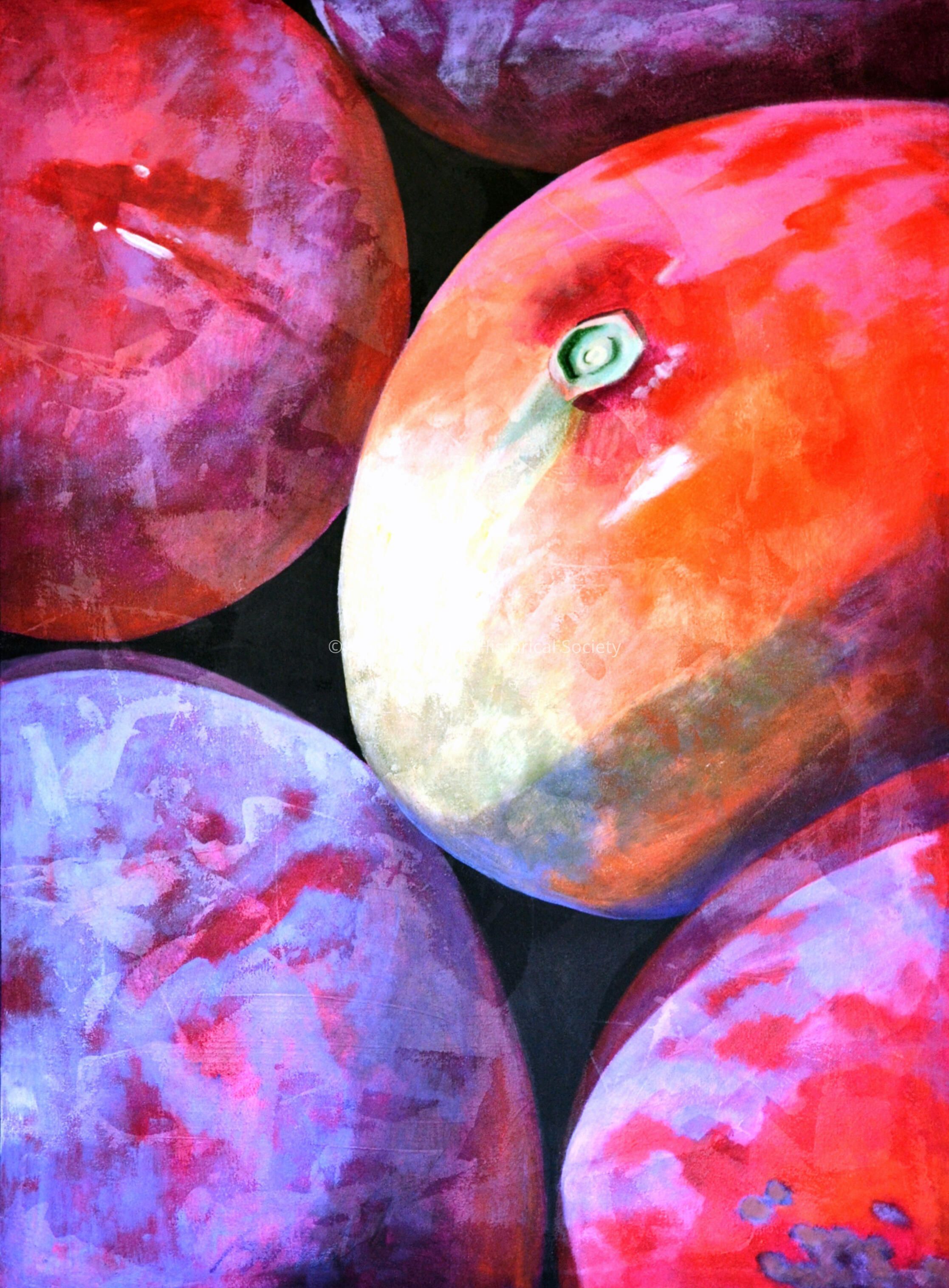 Oil painting on canvas by Craig Biondi depicting a close up of a group of ripe mangoes.Type of Painting