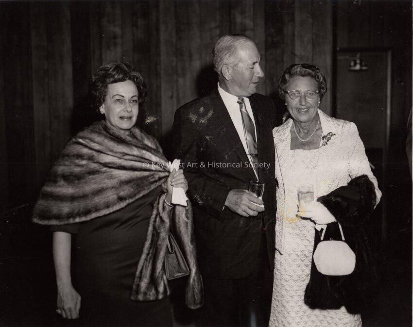 Left to right - Mrs. Sam Golan (Margo), Admiral Fredrick Brush, and Dr. Knowlton at a reception in honor of General G. Wheeler, USA, Chairman, JCS, and Mrs. Wheeler, hosted by Rear Admiral Frederick J. Brush, USN, Commander Key West Force, and Mrs. Brush at the Commissioned Officers Mess, US Naval Air Station, Key West, on Tuesday evening, January 7, 1969.Collection