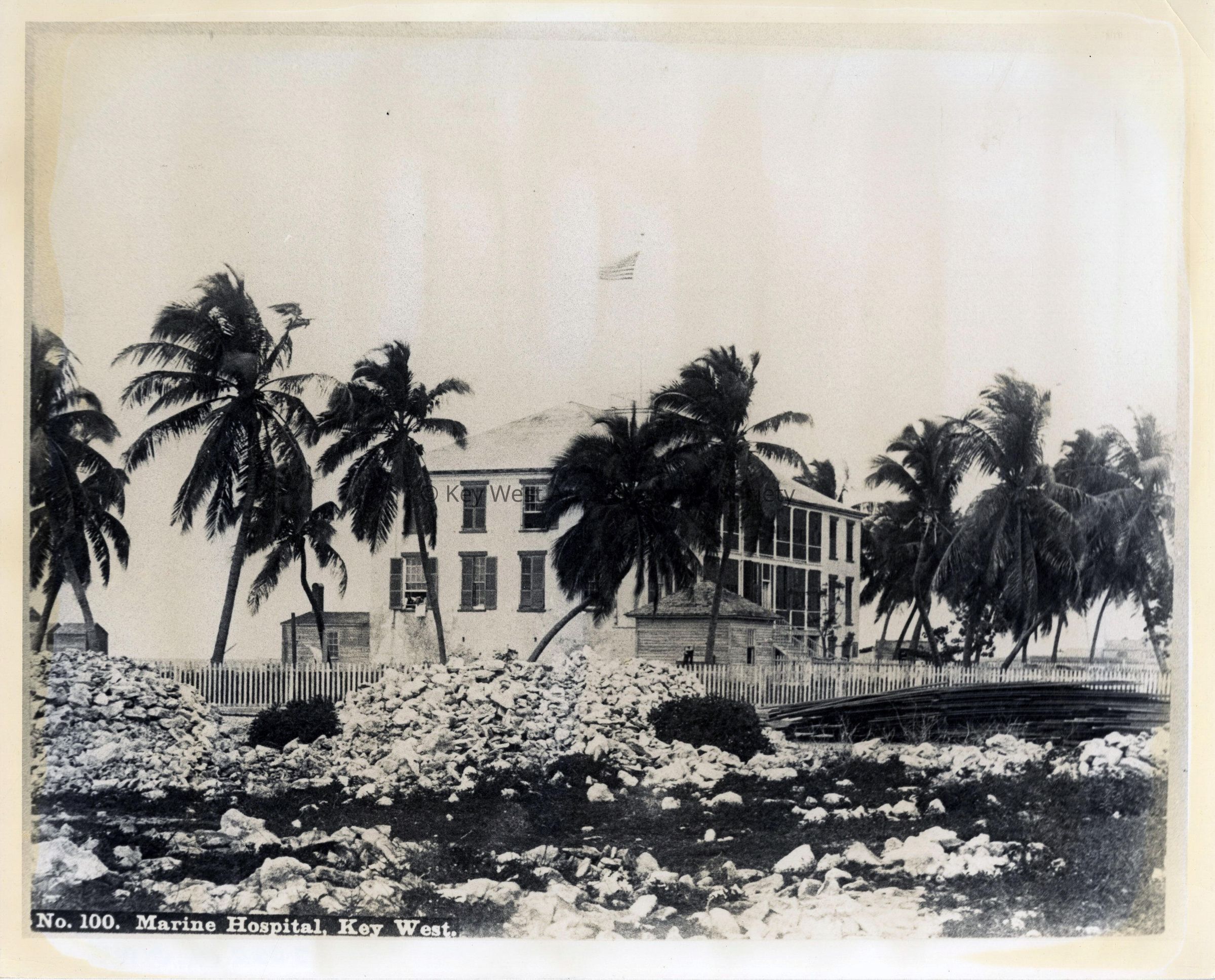 Black and white photograph of the Marine Hospital in present-day Truman Annex.