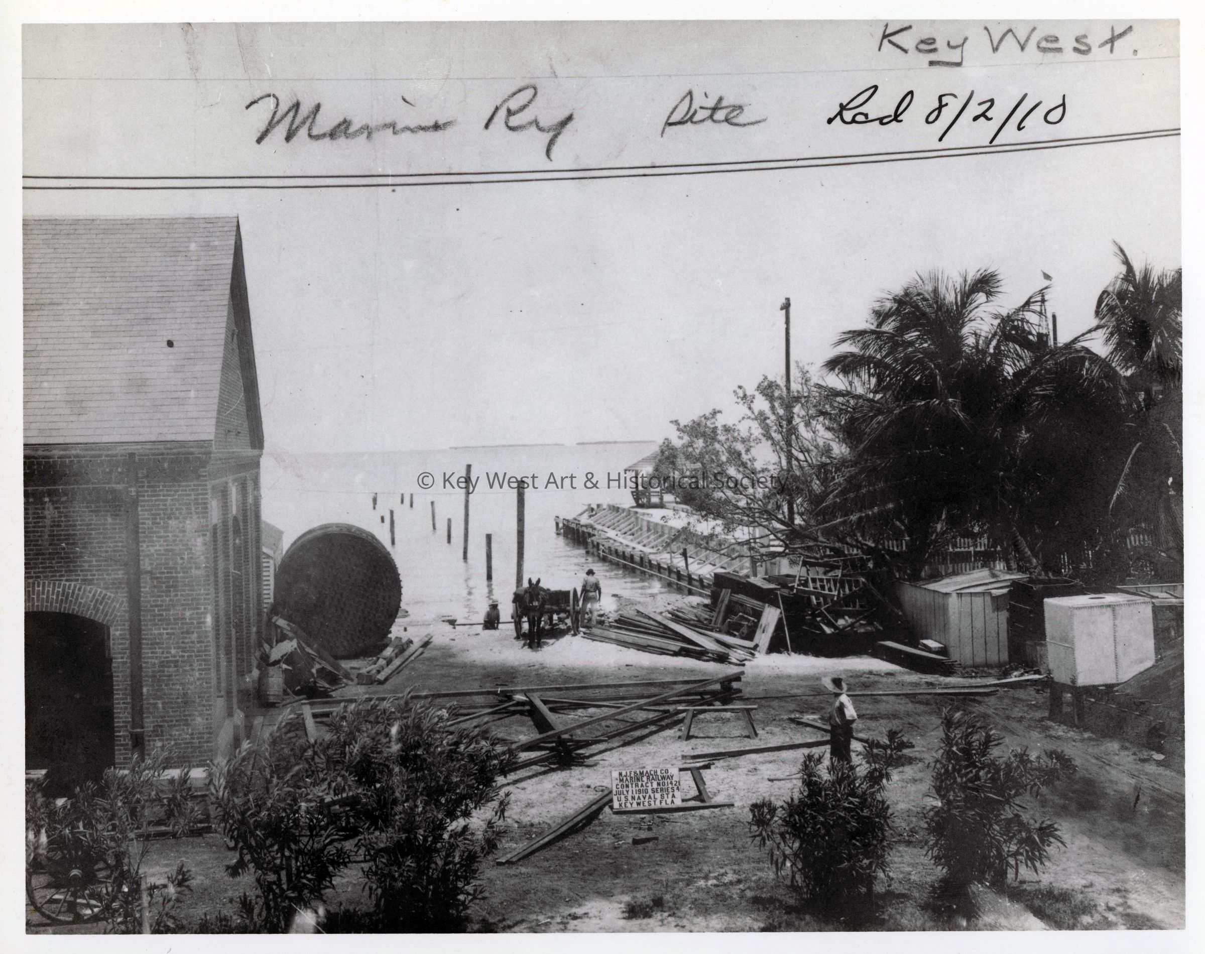 Black and white photograph of marine railway site on Naval Station Key WEst.