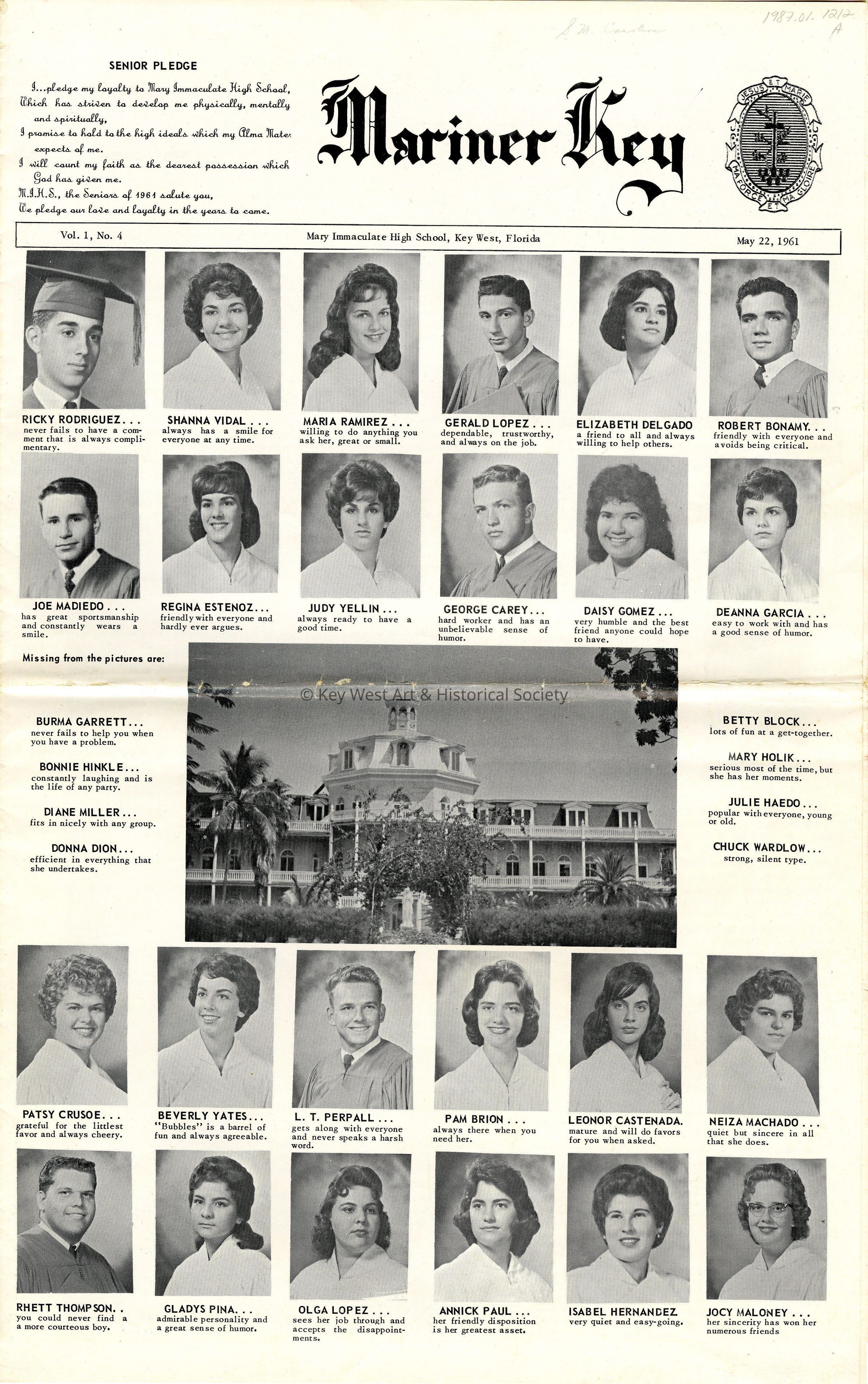 Convent of Mary Immaculate High School newspaper, 'Mariner Key' that contains information about the senior class and other school happenings.