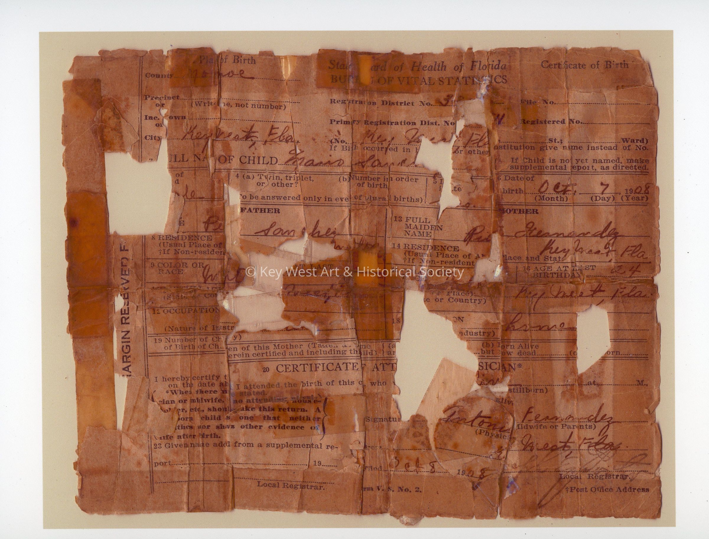 Print of Mario Sanchez's birth certificate: © Key West Art & Historical Society