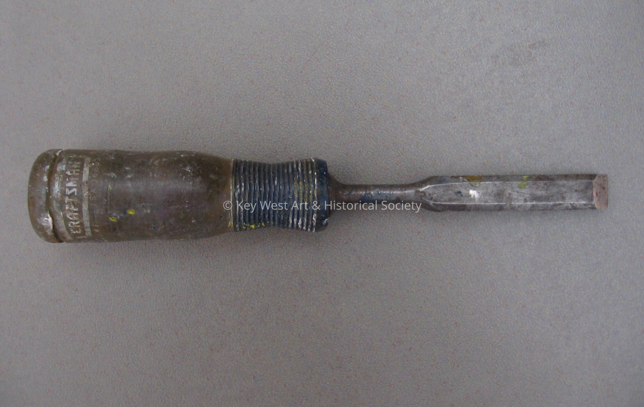 Craftsman plastic and metal chisel used by Mario Sanchez to create his intaglios. Top is plastic bottom is metal.Collection
