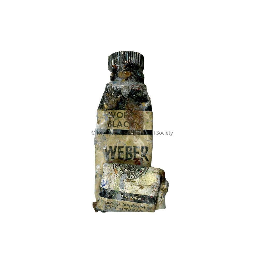 Squeezed tube of black Weber paint used by Mario Sanchez to create his intaglios.Collection