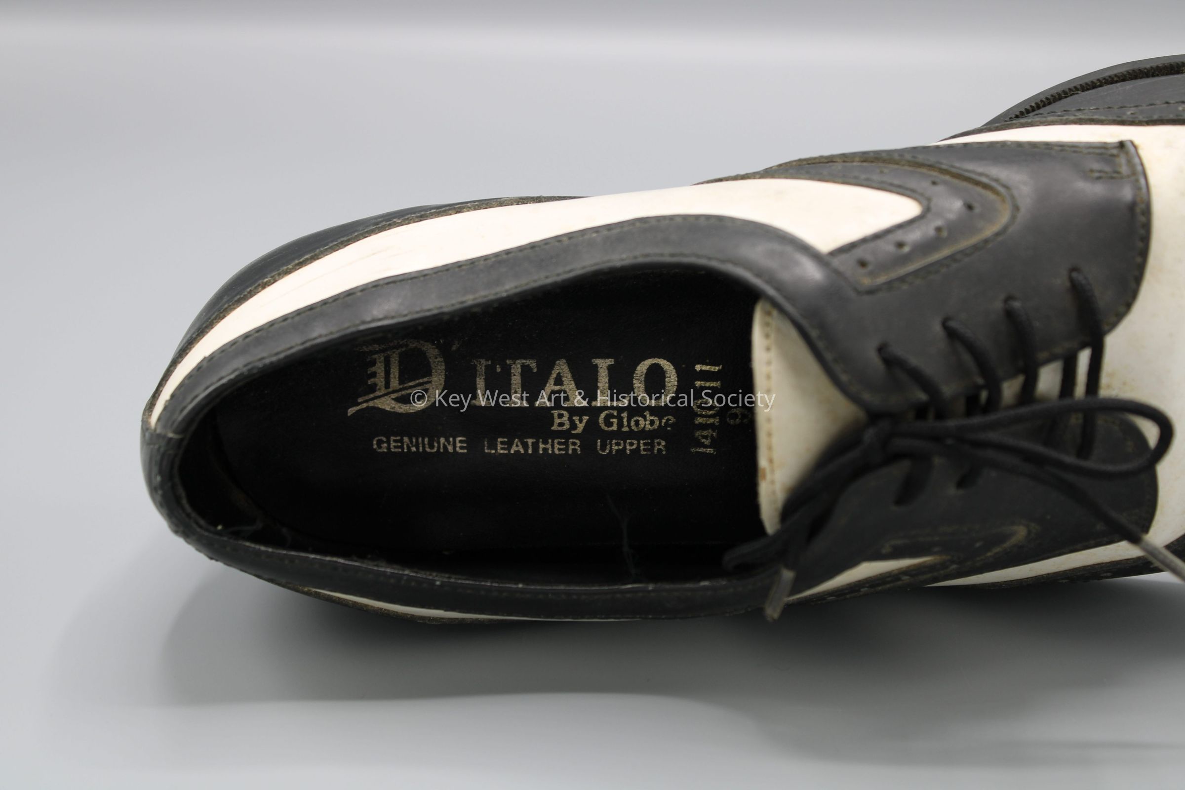 Black and white wingtip right shoe made by D'Italo by Globe and owned by artist Mario Sanchez.Collection