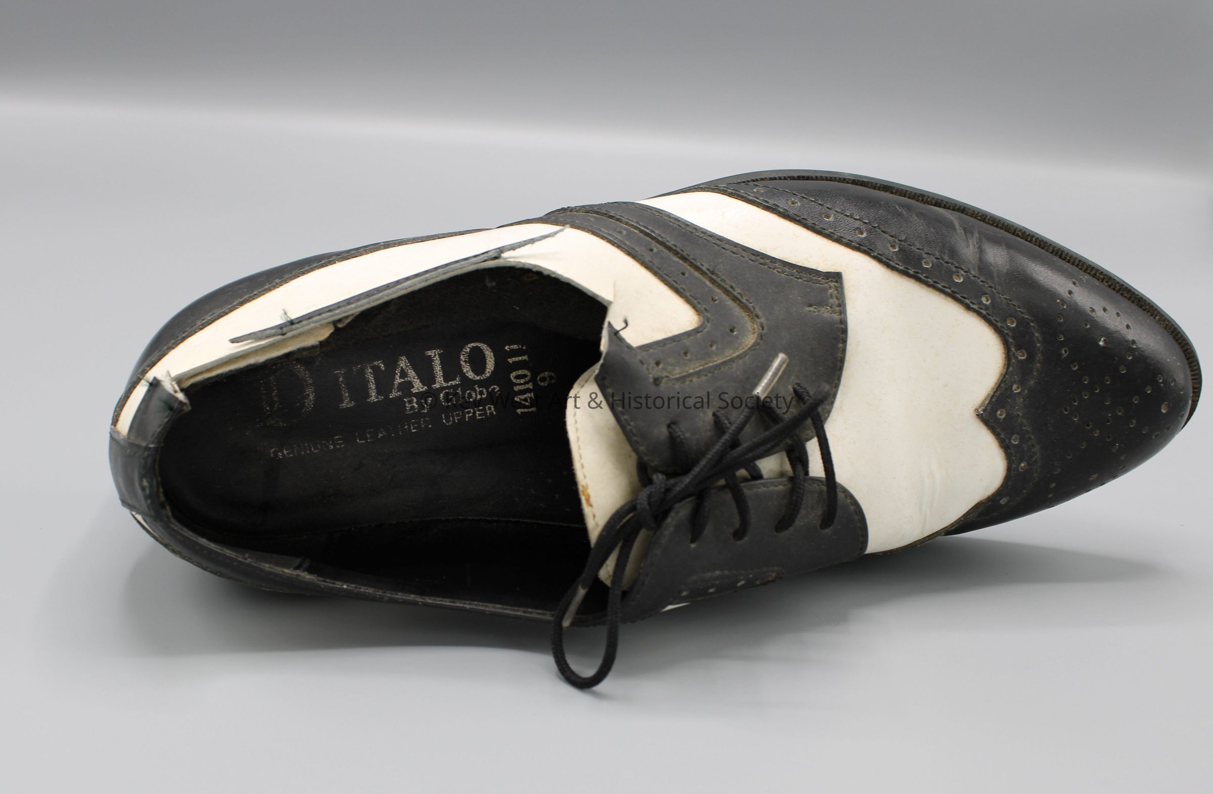 Black and white wingtip left shoe made by D'Italo by Globe and owned by artist Mario Sanchez.Collection