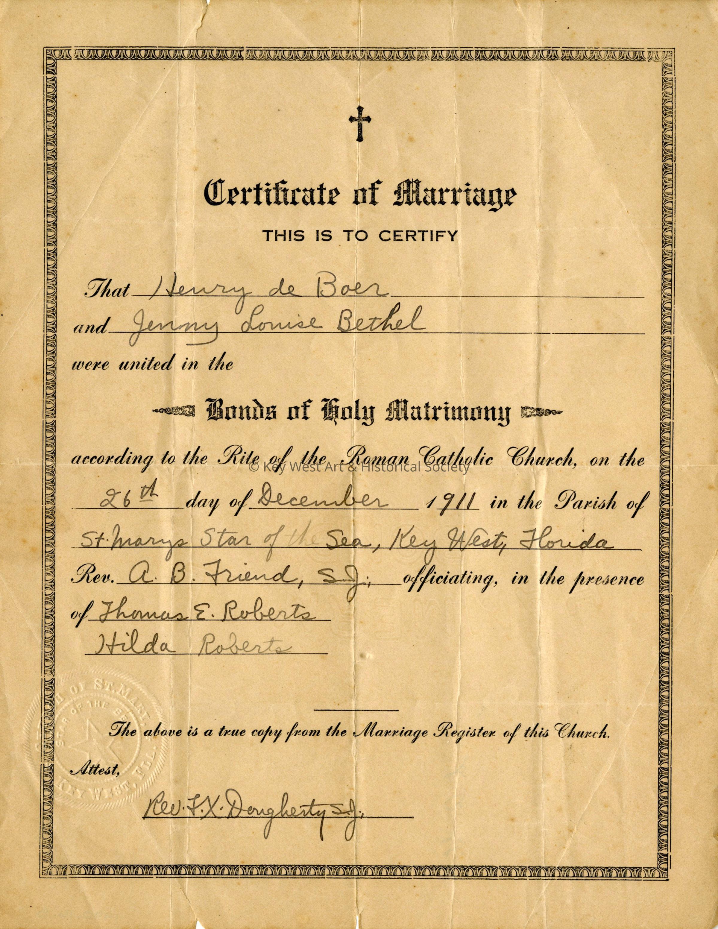Certificate, MarriageNomenclature Secondary Object Term