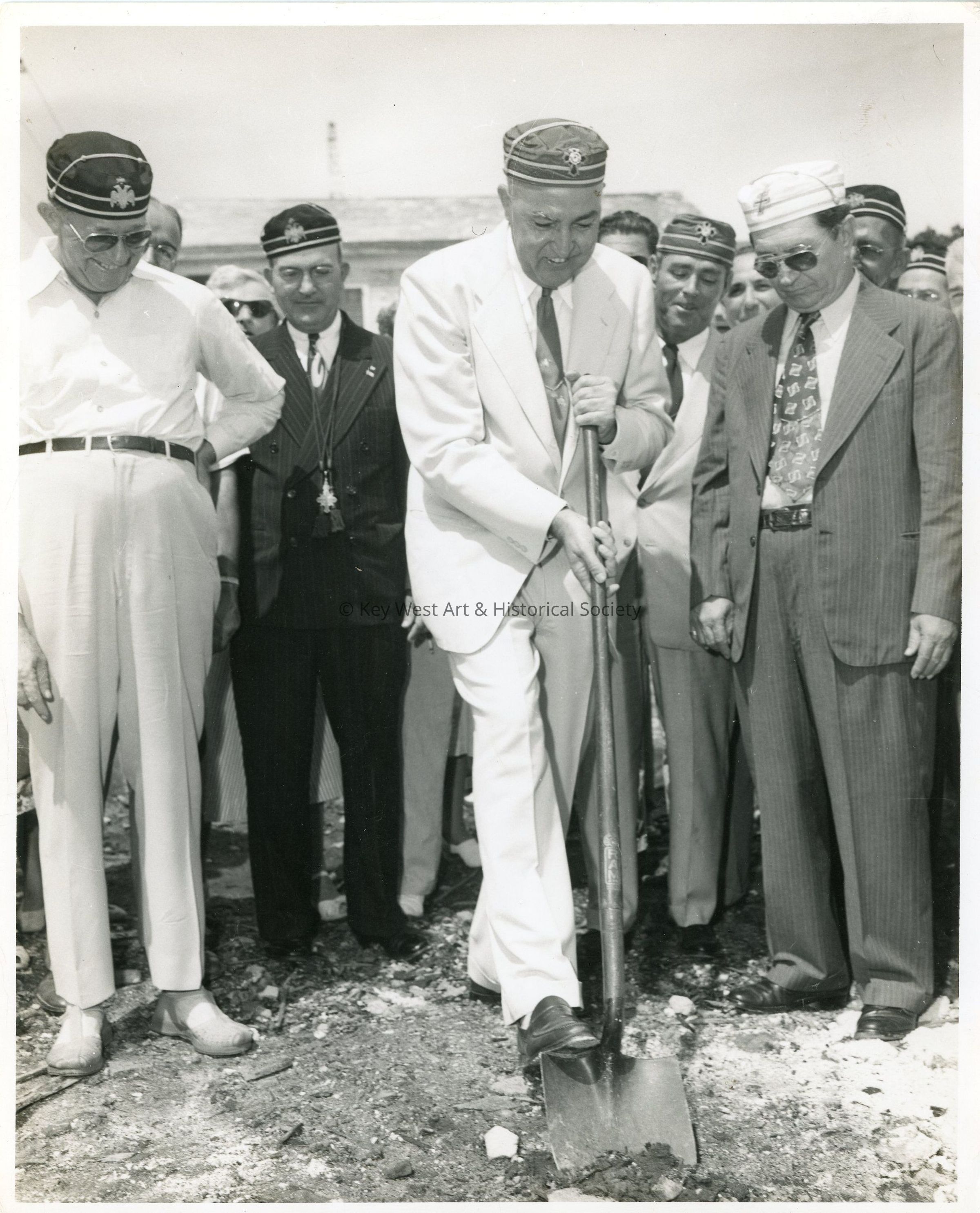 Black and white photograph of the Freemasons breaking ground on the Scottish Rite masonic temple located at 533 Eaton Street, the present-day location of The Studios of Key West.